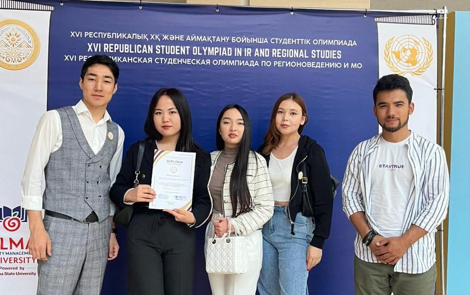 «6В03138-Халықаралық қатынастар» білім беру бағдарламасының студенттері Almaty Management Universityде өткен «Халықаралық қатынастар және аймақтану» бағыты бойынша XVI Республикалық студенттік пәндік олимпиадада жүлделі ІІІ орынға ие болды. Халықаралық қатынастар кафедрасының меңгерушісі, қауымдастырылған профессор Амирбек Айдарбектің ғылыми жетекшілігінде студенттеріміз: Бердібекұлы Мәди, Хамит Арайлым, Лес Ақбота, Ахетова Адия, Қарабай Раушанбек «Тұрақты даму және Қазақстанның сыртқы саясаты» атты жобаларын сәтті қорғап, сарапшылар тарапынан жоғары деңгейде бағаланып, жүлделі ІІІ орынды иеленді. Осы орайда, бұл студенттерімізді құттықтай отырып, жетістіктерінің арта беруін тілейміз.