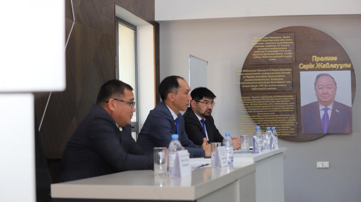 «Экономика, қаржы және есеп» кафедрасының ұйымдастыруымен кәсіби тәжірибе алмасу және аудит саласының маңыздылығын арттыру мақсатында «Түркістан облысы бойынша тексеру комиссиясы» Мемлекеттік мекемесімен кездесу өтті. Кездесу барысында мекеме төрағасы Тапеев Ғалымжан Серікбайұлы, аппарат басшысы Жанабай Абзал Мұханұлы, «Сапаны бақылау және құқықтық қамтамасыз ету» бөлімінің басшысы Жолдасбеков Ербол Акимбекович білімгерлерге аудиттің теориялық және практикалық аспектілерін тереңірек түсіндіріп, пікір алмасты. Білімгерлер арасынан сұрақтар қойылып, пайдалы ақпараттар алды.