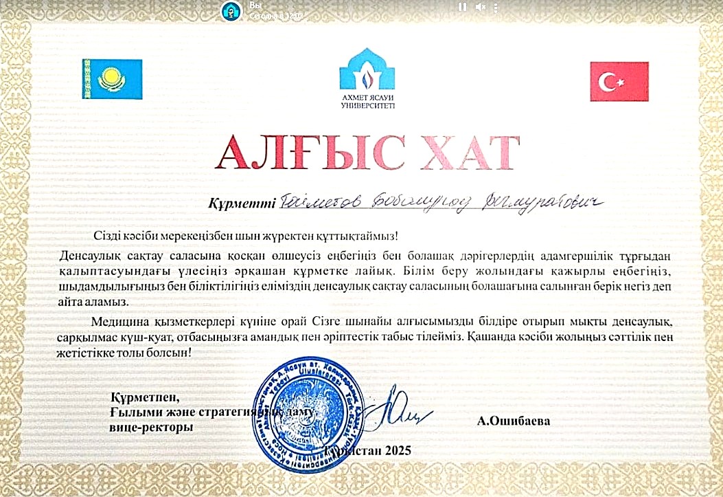 С.Ж. АСФЕНДИЯРОВ АТЫНДАҒЫ ҚАЗАҚ ҰЛТТЫҚ МЕДИЦИНА УНИВЕРСИТЕТІ