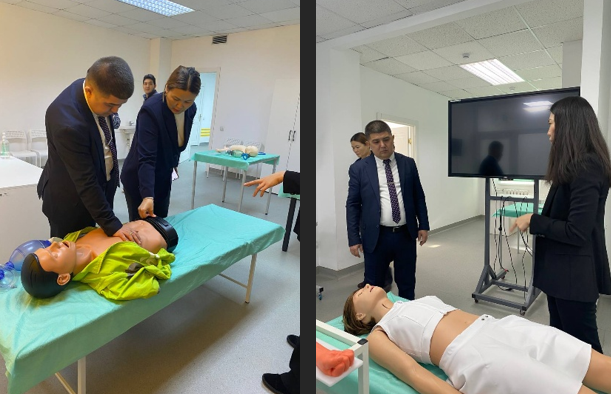 Қаңтар айының 26-27 күндер аралығында Қарағанды медицина университетінің Симуляциялық және білім беру технологиялары орталығының директоры Кемелова Гулшат Сейтмуратовна және орталық қызметкерлері қарсы алып, орталықтағы роботтандырылған симуляторлардың жұмыс қағидалары, симуляциялық оқыту бағдарламалары, оқу, басқару және бағалау жүйелері таныстырылды.