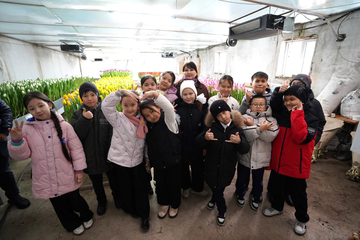 Оқушылар экскурсияны дәл қазіргі уақытта ерекше құлпырып тұрған, оқу ордамыздың ботаникалық бағындағы әсем қызғалдақтарды тамашалаудан бастады. Көктемнің көркіне айналған қызғалдақтар балалардың көңіл күйін көтерді.