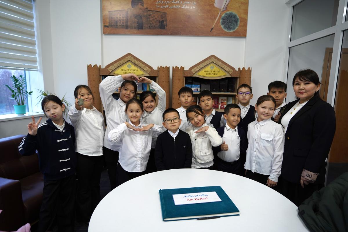 Кейін кішкентай қонақтар Мәдениет орталығында орналасқан музейге барды. Түркі әлемінің тарихы мен рухани мұрасы туралы мәлімет алып, тарихи жәдігерлерді қызығушылықпен тамашалады.