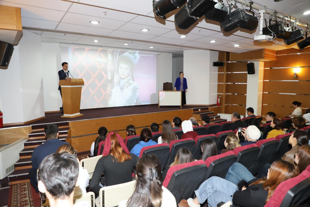 Іс-шарада университет ректоры Жанар Темірбекова ғалым Сейіт Қасқабасовтың «Қыз Жібек» дастаны туралы көлемді мақаласы жарияланған «ТҮРКІСОЙ» журналын Меруерт Өтекешоваға табыстады.