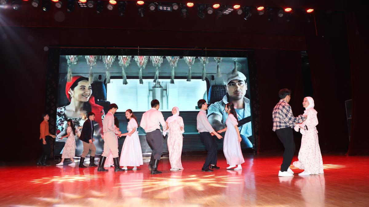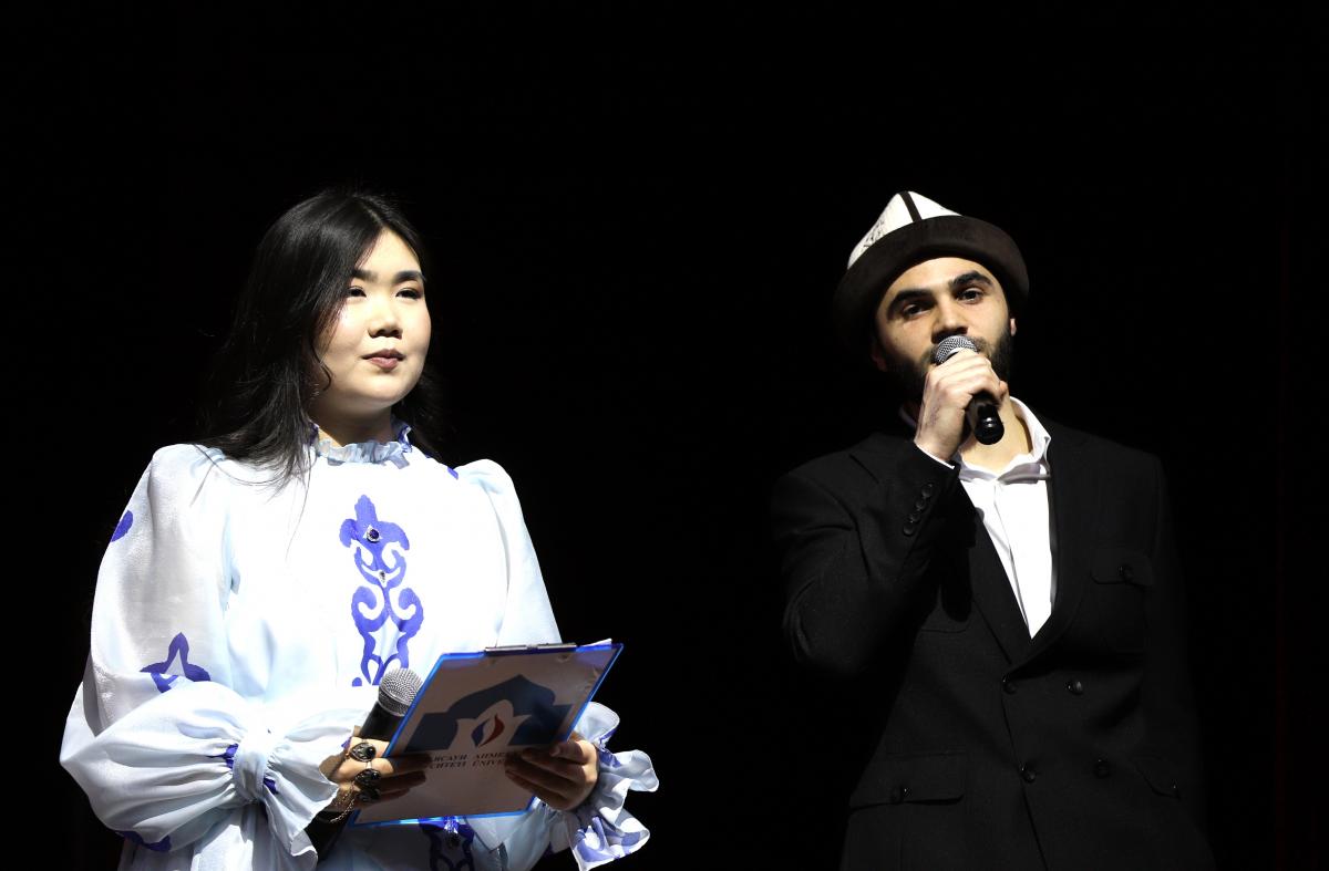 Сахна төрінде қырғыз жастары комуз аспабында күй ойнап, «Қырғыз», «Қырғыз жолу» билерін билеп, «Мурас», «Эне тил», «Биздин мекен», «Кечки бишкек», «Ким билет» әндерін өз тілінде әуелете шырқады.