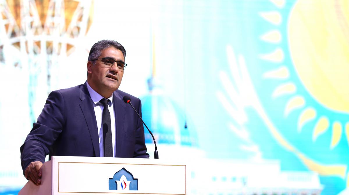 Ал ректор өкілі м.а Нажи Генч: «Бүгін сіздермен Қазақстан Республикасының Ата заңына 30 жыл толуына орай меркелік іс-шарада басқосқанымызға қуаныштымын!