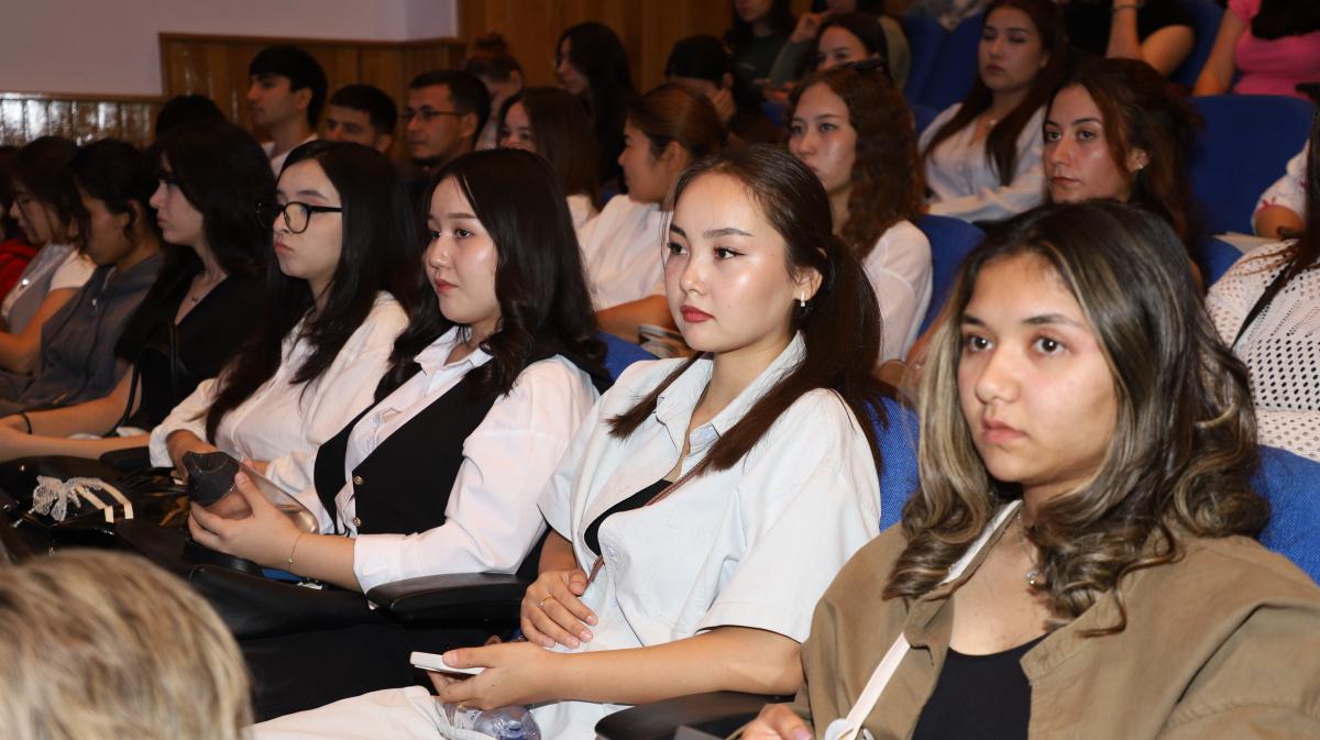 Мерекелік жиын шымылдығын ректор Жанар Темірбекова ашып, құттықтауын жеткізді. Ректор «Адам құқықтары идеясының эволюциясы: Ясауидің рухани мұрасынан ҚР-ның Конституциясына дейін» тақырыбында баяндама оқыды.