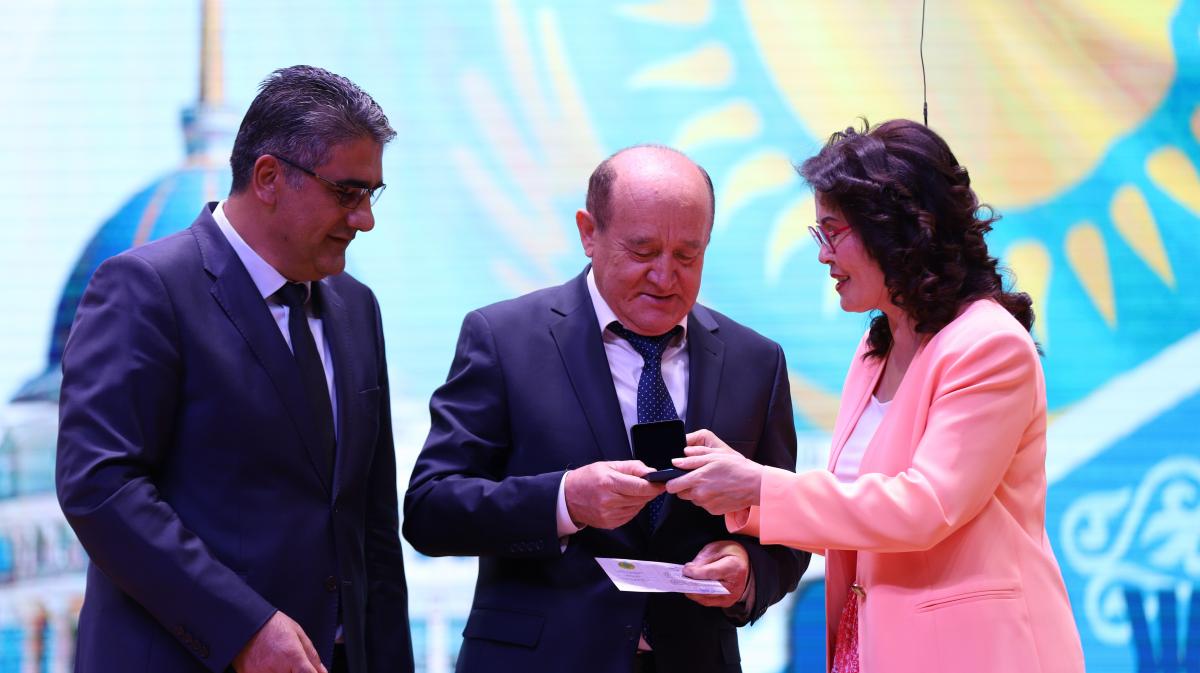Келесі кезекте, университетіміздің бірқатар оқытушы-профессоры, ғалымдары мен қызметкерлері ҚР Ғылым және жоғары білім министрінің «Құрмет» грамотасы және Алғыс хатымен, сондай-ақ «Ғылымды дамытуға сіңірген еңбегі үшін» төсбелгісімен марапатталды. Ғылым саласында елеулі еңбек етіп жүрген жандардың марапатын ректор мен ректор өкілі салтанатты түрде табыстады.