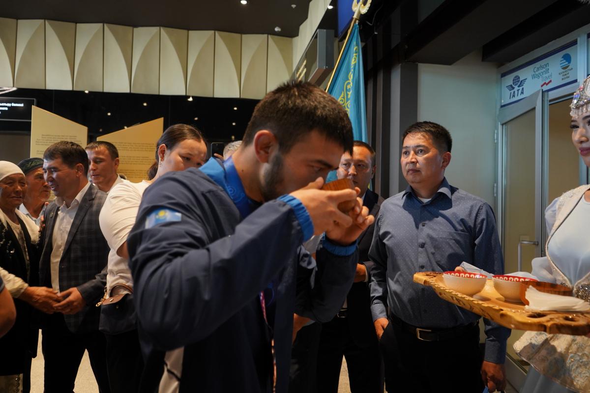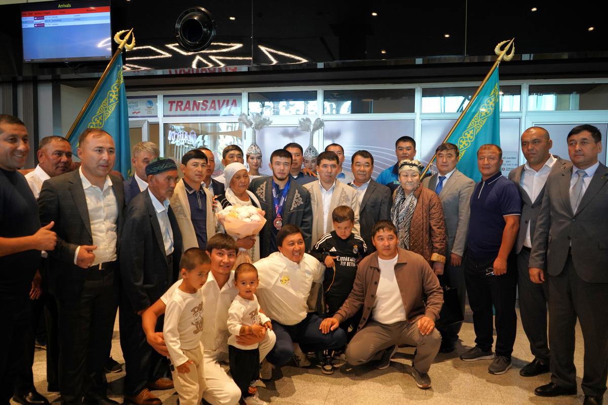 Әуежайдағы кездесуге оқу ордамыздың Спорт-сауықтыру орталығының бапкерлері мен Спорт факультетінің басшылығы мен студенттері, жанкүйерлер жиналып, жеңімпазымызға шапан жауып, ыстық ықыластарын білдірді.
