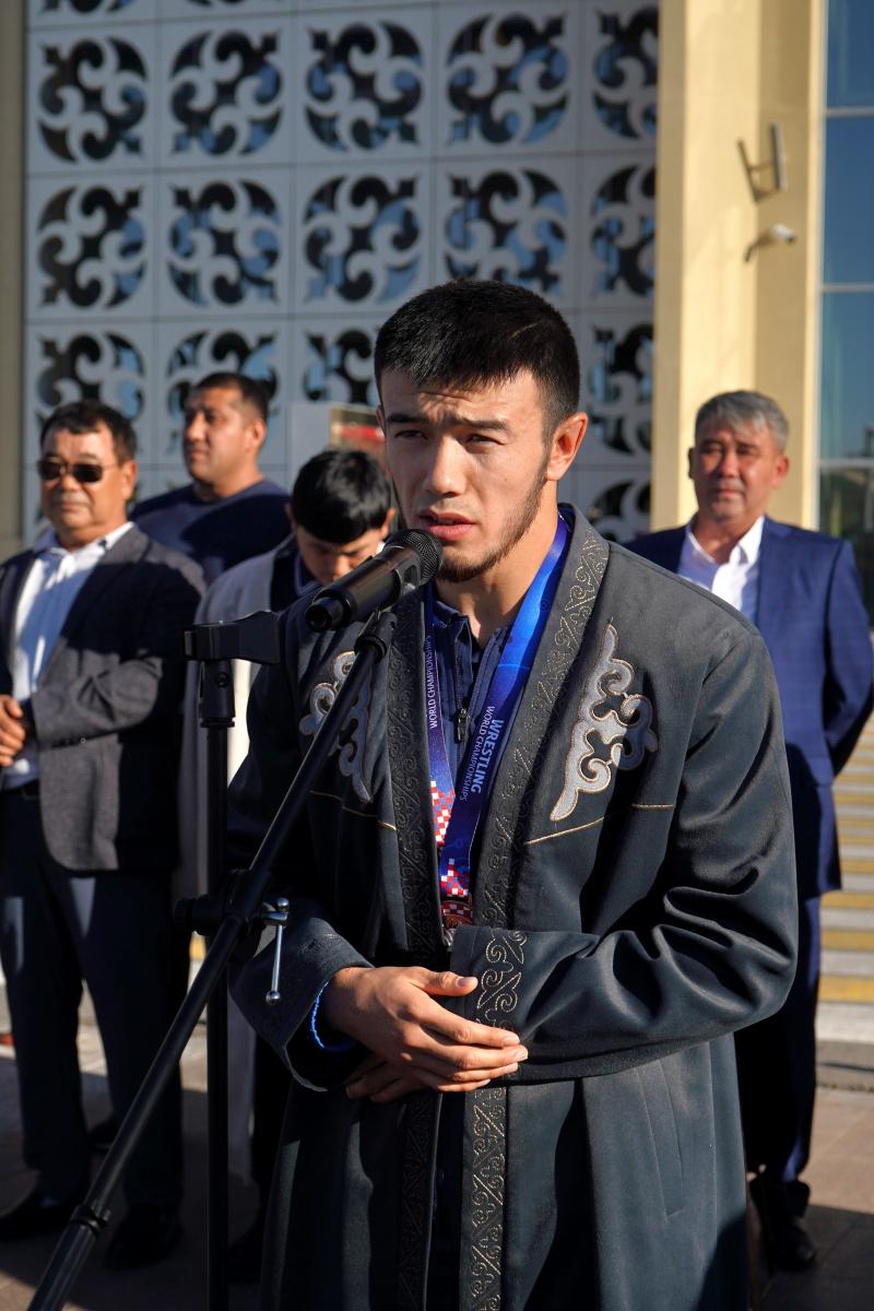 Бүгін Түркістан халықаралық әуежайында Ахмет Ясауи университетінің студенті, еркін күрестен ересектер арасындағы Әлем чемпионатының қола жүлдегері Асылжан Есенгелдіні салтанатты түрде қарсы алу рәсімі өтті.
