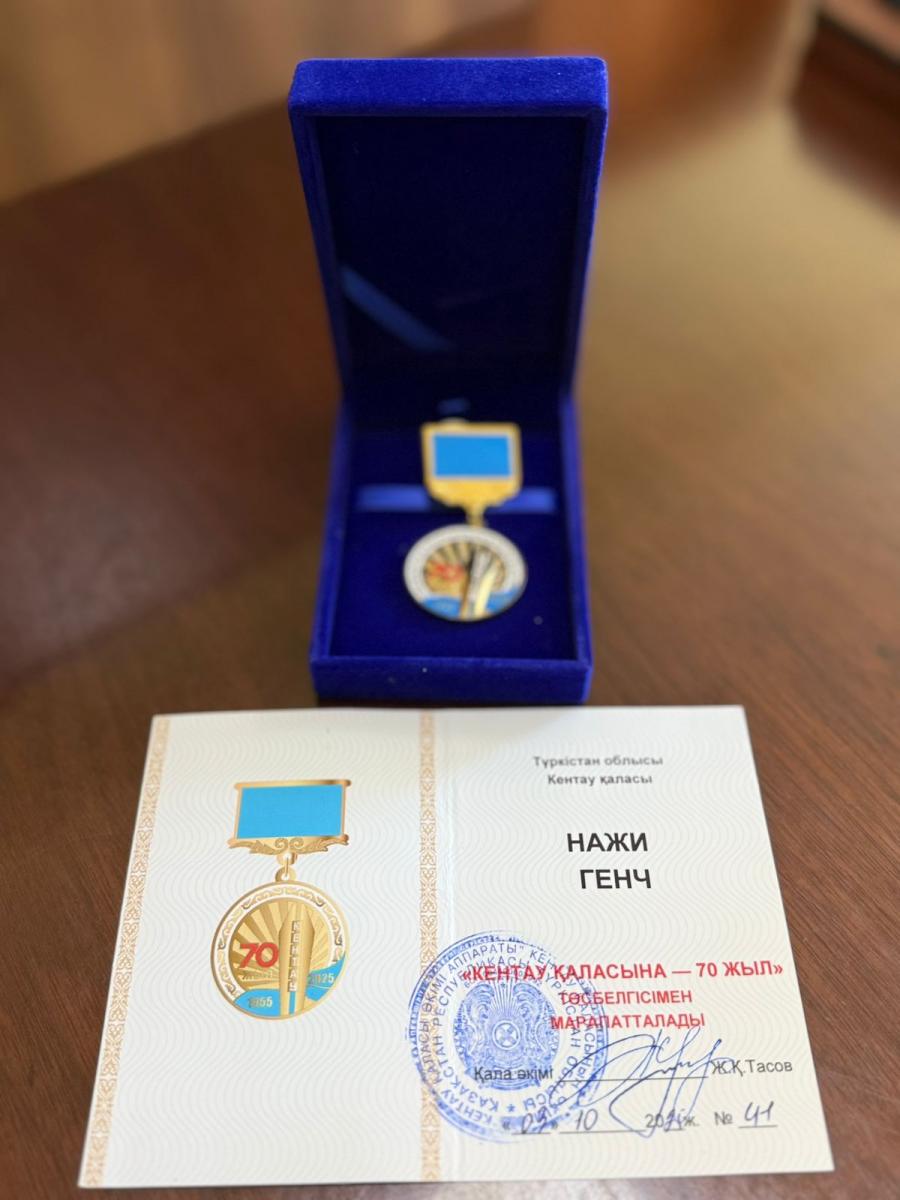 РЕКТОР ӨКІЛІ НАЖИ ГЕНЧ КЕНТАУ ҚАЛАСЫНЫҢ 70 ЖЫЛДЫҚ МЕДАЛІМЕН МАРАПАТТАЛДЫ