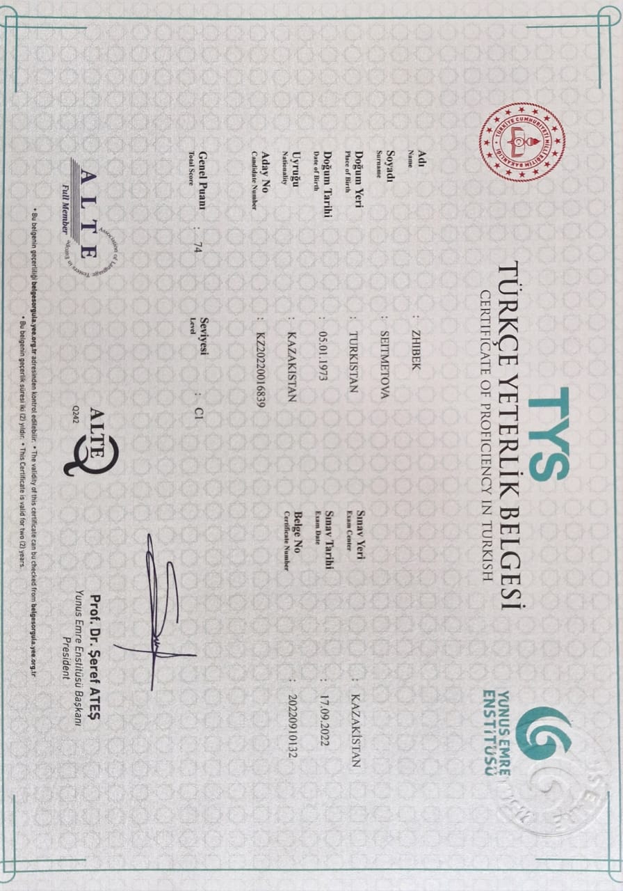 Өмірбаян Мен, Сейтметова Жібек Абдрайымқызы, 05.01.1973 жылы Оңтүстік Қазақстан облысы, Бөген ауданы, Бөген селосында дүниеге келдім. Ана тілім – қазақ тілі, түрік және орыс тілдерінде еркін сөйлеймін және ағылшын тілі бастапқы деңгей. 1979 жылы қыркүйек айында Кентау қаласының №24 орта мектебіне қабылданып, 1989 жылы 10-сыныпты бітірдім. 1989 жылдан 1990 жылға дейін Кентау қалалық ауруханасы, терапия бөлімінде санитар, 1990 жылдан 1991 жылдың маусымына дейін Новосибирск тігін фабрикасында тігінші болып жұмыс істедім. 1991 жылы Павлодар педагогикалық институтының филология факультеті, өзге тілді мектептерде қазақ тілін оқыту жеделдетілген бағдарламасы бойынша оқып, 1993-жылы тәмамдадым. 1993-1996- жылдар арасында Павлодар қаласы №39 мектеп-гимназиясында мұғалімдік қызмет атқардым. 1997 жылы Кентау қаласының №22 мектеп.лицейінде қазақ тілі мұғалімі болып жұмыс істедім. 1997 жылы Қожа Ахмет Ясауи атындағы Халықаралық қазақ-түрік университеті, тарих-филология факультетіне түрік тілі әдебиеті мен қазақ тілі мамандығына түсіп, 2001 жылы тәмамдадым. 2001-2007 жылдар арасында Қожа Ахмет Ясауи атындағы Халықаралық қазақ-түрік университеті, филология факультетінде түрік тілі оқытушысы қызметін атқардым.2007-2010 жылдар арасында ТОО «Хамле»-де кадр бөлімінің басшысы қызметін атқардым. 2010-2015 жылдар арасында Қызылорда облысы, Жаңақорған ауданы, Бесарық балалр өнер мектебінде мұғалім болып қызмет атқардым.01.09.2015 жылдан бастап филология факультеті, түрік филологиясы кафедрасының оқытушысы;10.02.2021 жылдан бастап Мәдениет орталығы басшысы қызметін атқарып келемін.Отбасы жағдайым – тұрмыстамын, 4 баланың анасымын.Жұбайым: Айсынов Сырым Баденович, 26.05.1968 жылы Қызылорда облысы, Жаңақорған ауданында дүниеге келген. Ұлым: Баден Бейбарыс Сырымұлы, 19.06.2001 жылыҚызым: Бәден Жәнел Сырымқызы, 20.11.2003 жылыҰлым: Бәден Қайсар Сырымұлы, 28.10.2005 жылыҰлым: Дінмұхамед Сырымұлы 23.03.2012 жылы дүниеге келген. Тұрғылықты мекен жайым: Түркістан қаласы, Суяб көшесі, №12 үй. Телефон номерім: 87014403545