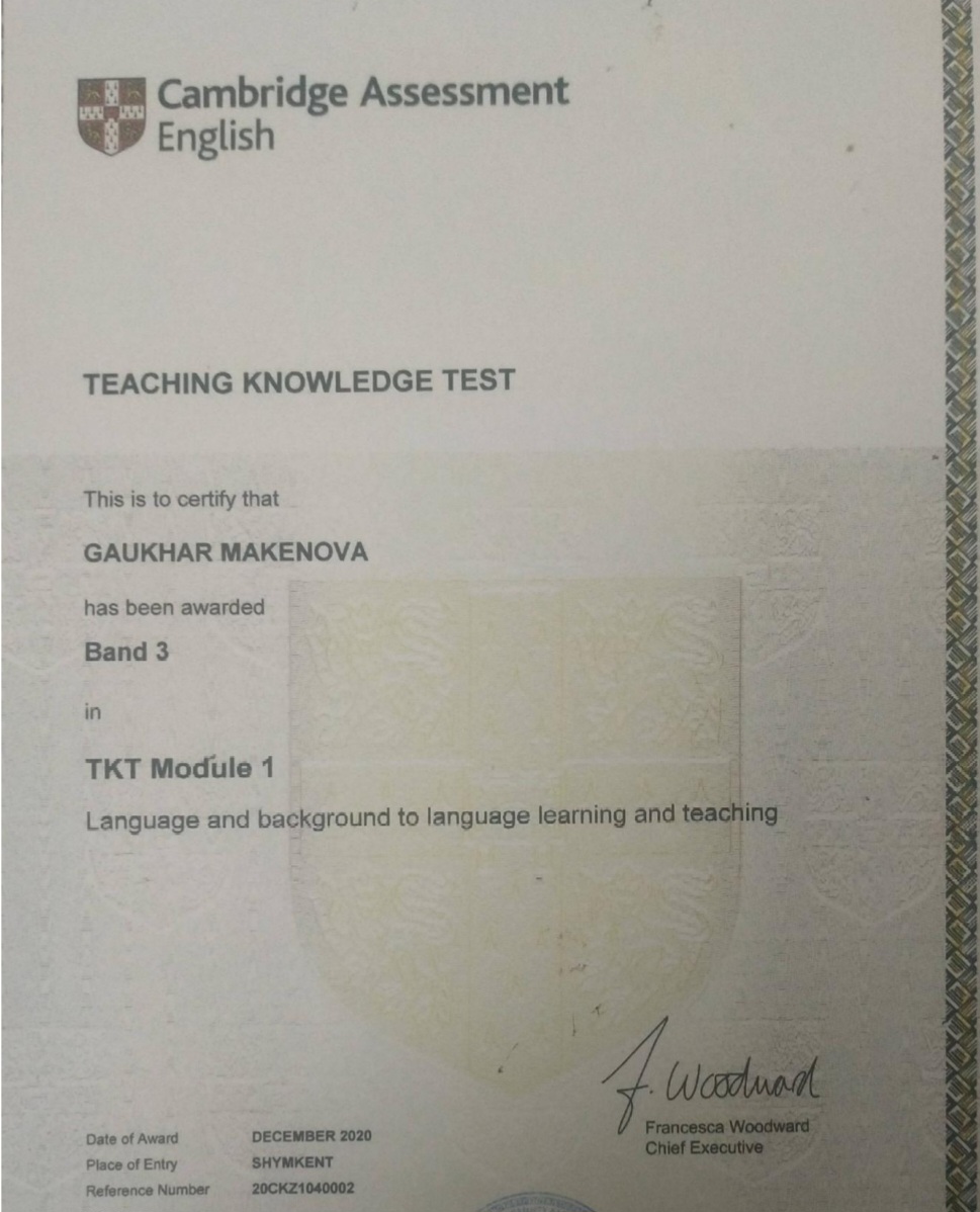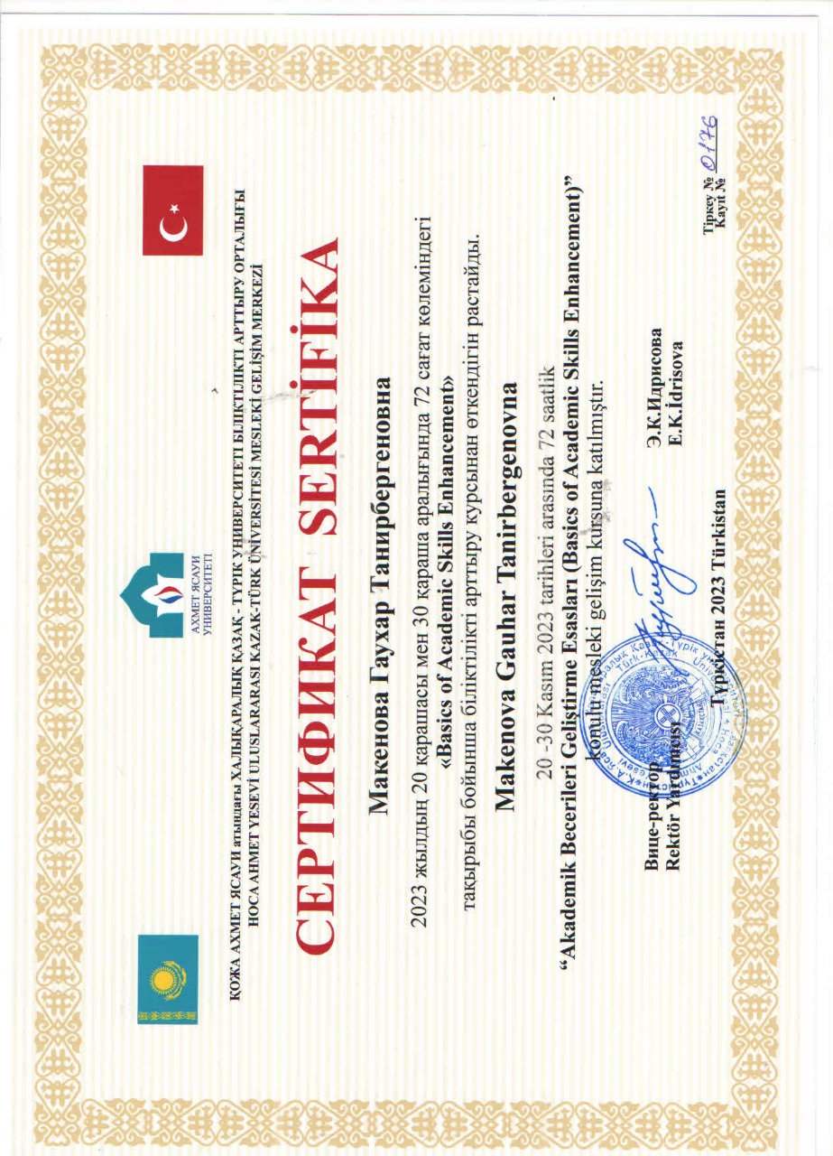 Мен, Макенова Гаухар Тәңірбергенқызы 1983ж 28-шілдеде Оңтүстік Қазақстан облысы, Түркістан қаласында дүниеге келдім. Ана тілім – қазақ тілі. 1989ж Қазақстанның 30 жылдығы ауылындағы Молда Мұса атындағы жалпы орта мектебінің 1-сыныбына қабылданып, 2000ж бітіріп шықтым.2000ж Алматы қаласы, Абылай хан атындағы Қазақ мемлекеттік әлем тілдері және халықаралық қатынастар унисерситетіне Ағылшын тілі мамандығы бойынша оқуға түсіп, 2002ж отбасылық себептермен Түркістан қаласындағы Қожа Ахмет Ясауи атындағы Халықаралық қазақ-түрік университеті Ағылшын филологиясы мамандығына ауыстым. 2004 ж Филолог, ағылшын тілі, әдебиеті және түрік тілдері оқытушысы біліктілігі берілді.2004-2006 жж Қожа Ахмет Ясауи атындағы Халықаралық қазақ-түрік университетінде Ағылшын тілі мен әдебиеті мамандығы бойынша филология магистрі біліктілігі мен академиялық дәрежесі берілді.2004-2022 жж аралығында Қожа Ахмет Ясауи атындағы Халықаралық қазақ-түрік университеті Ағылшын филологиясы кафедрасында оқытушы қызметін атқардым. 2021ж ХББ НЗМ-де уақытша ағылшын тілі мұғалімі қызметін атқардым. 2022-2023 оқу жылында Сауран ауданы, Әшірбек Сығай атындағы ЖББМ-де ағылшын тілі мұғалімі қызметін атқардым.2023ж 1-қыркүйегінен бастап Қожа Ахмет Ясауи атындағы Халықаралық қазақ-түрік университеті Ағылшын филологиясы және аударма ісі кафедрасына аға оқытушы қызметіне қайта қабылдандым. Отбасылымын. Жолдасым – Назаров Ораз (1979ж) Әшірбек Сығай атындағы ЖББМ-де қазақ тілі мұғалімі. Қызым Баймаханбет Арай 2005ж туылған. Көкшетау мемлеткеттік университетінің студенті. Ұлдарым Баймаханбет Ерасыл (2007ж), Баймаханбет Нұрасыл (2007ж), Баймаханбет Айсұлтан (2014ж), Баймаханбет Әлихан (2015ж) – мектеп оқушылары, Баймаханбет Ахмет (2021ж) – балабақшада.Мен және менің туыстарым сотты болмаған. Тұрғылықты мекен-жайым Түркістан облысы, Сауран ауданы, Шаға а\о, Ынтымақ ауылы, Темірқорған көшесі 7а үй. Телефон + 77077089013