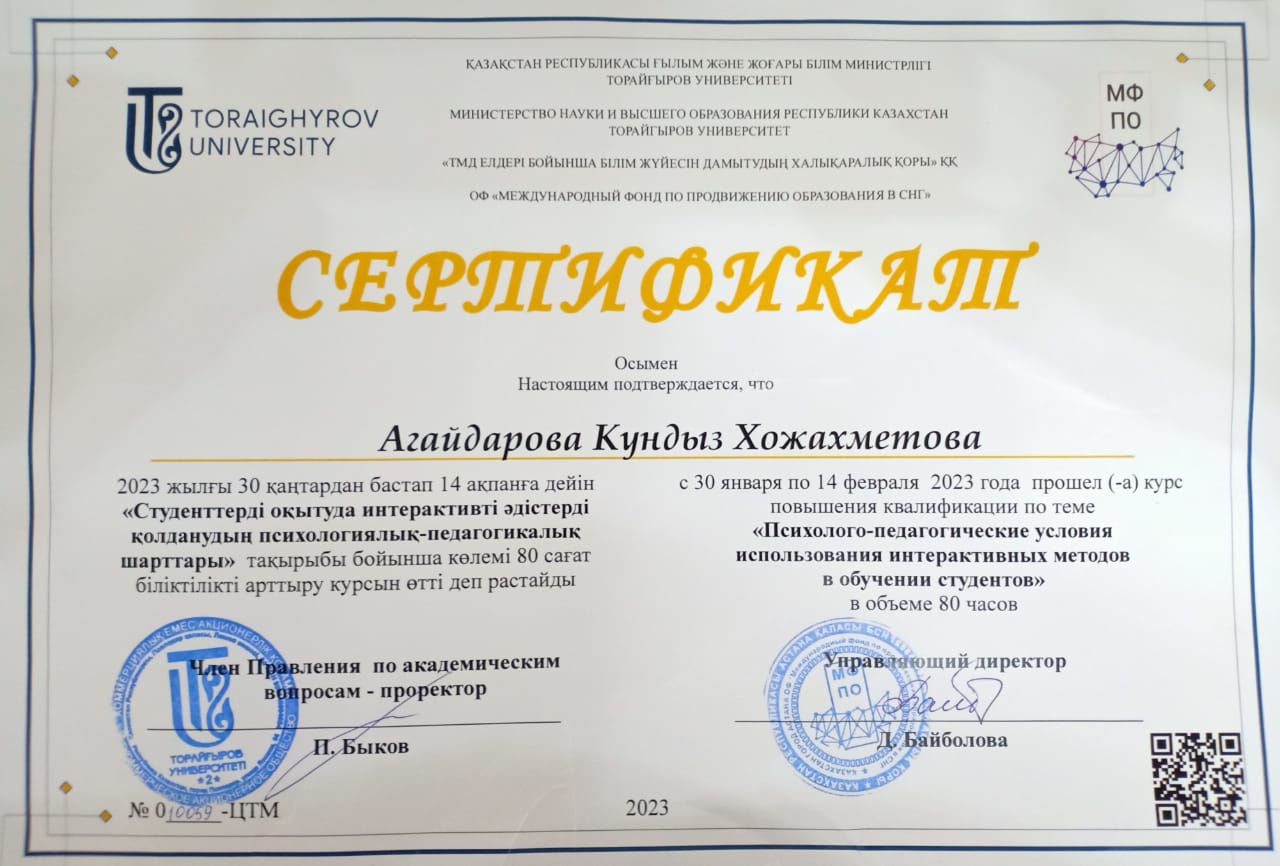 Агайдарова Кундыз Хожахметовна 1981 жылы 2-қырқүйекте Өзбекстан Республикасы, Қарақалпақстан Республикасы, Хожелі қаласында дүниеге келді. Ұлты – қазақ. Қазақстан Республикасының азаматы. 1988-1998 жылдар аралығында Өзбекстан Республикасы, Қарақалпақстан Республикасы, Хожелі қаласы, №32 Жұмағали Қалдықараев атындағы жалпы орта мектебінде білім алды. 1998 жылы Қазақстан Республикасы, Оңтүстік Қазақстан облысы, Шымкент қаласындағы Алматы Үздіксіз Білім беру Университетінің екі шет тілі: (ағылшын тілі және неміс тілі мұғалімі) мамандығы бойынша оқуға түсті. Аталған ЖОО 2002 жылы бітіріп, екі шет тілі: ағылшын тілі және неміс тілі мұғалімі деген біліктілікті алды.2002-2003 жылдары аралығында Қазақстан Республикасы, Оңтүстік Қазақстан облысы, Түлкібасы ауданы, Каучук елді мекенінде «Каучук» жалпы орта мектебінде ағылшын тілі пәнінің мұғалімі қызметін атқарды.2003 жылдан бері Түркістан қаласындағы Қожа Ахмет Ясауи атындағы халықаралық қазақ-түрік университетінде оқытушы қызметін атқаруда. 2005 жылы Түркістан қаласындағы Қожа Ахмет Ясауи атындағы халықаралық қазақ-түрік университетінің «Филология (ағылшын тілі)» мамандығы бойынша магистратураға оқуға түсіп, 2007 жылы магистратураны бітіріп, «Филология (ағылшын тілі)» мамандығы бойынша филология магистрі біліктілігі мен академиялық дәрежесі берілді.Жалпы еңбек өтілі - 21 жыл.Отбасылы, бір ұл мен екі қыздың анасы. Қазіргі мекенжайы: Түркістан қаласы, Арыстан баб көшесі, № 4а үй.