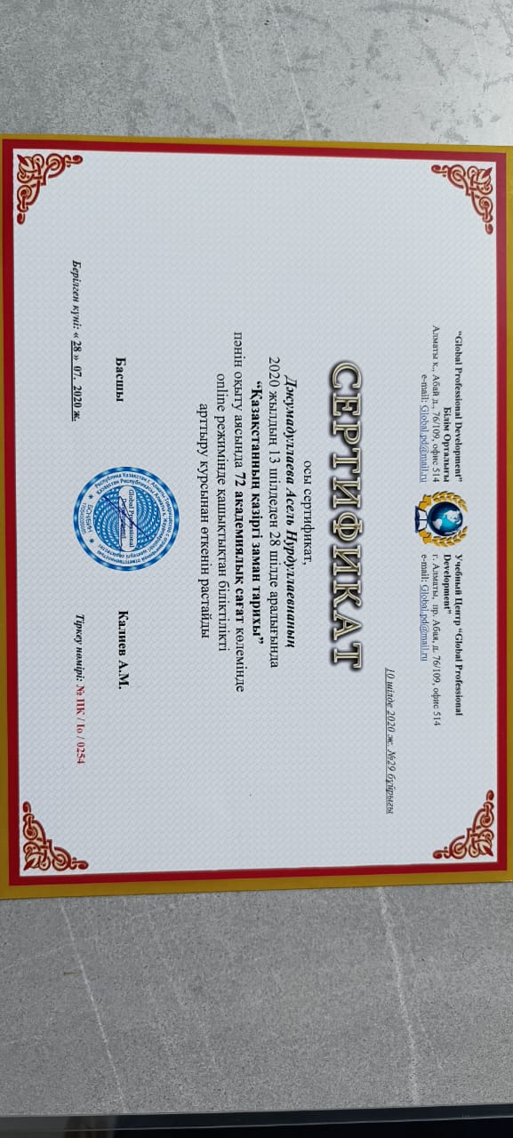 | Kısa Bilgi | Кафедра меңгерушісі, Ғылым кандидаты, аға оқытушы |