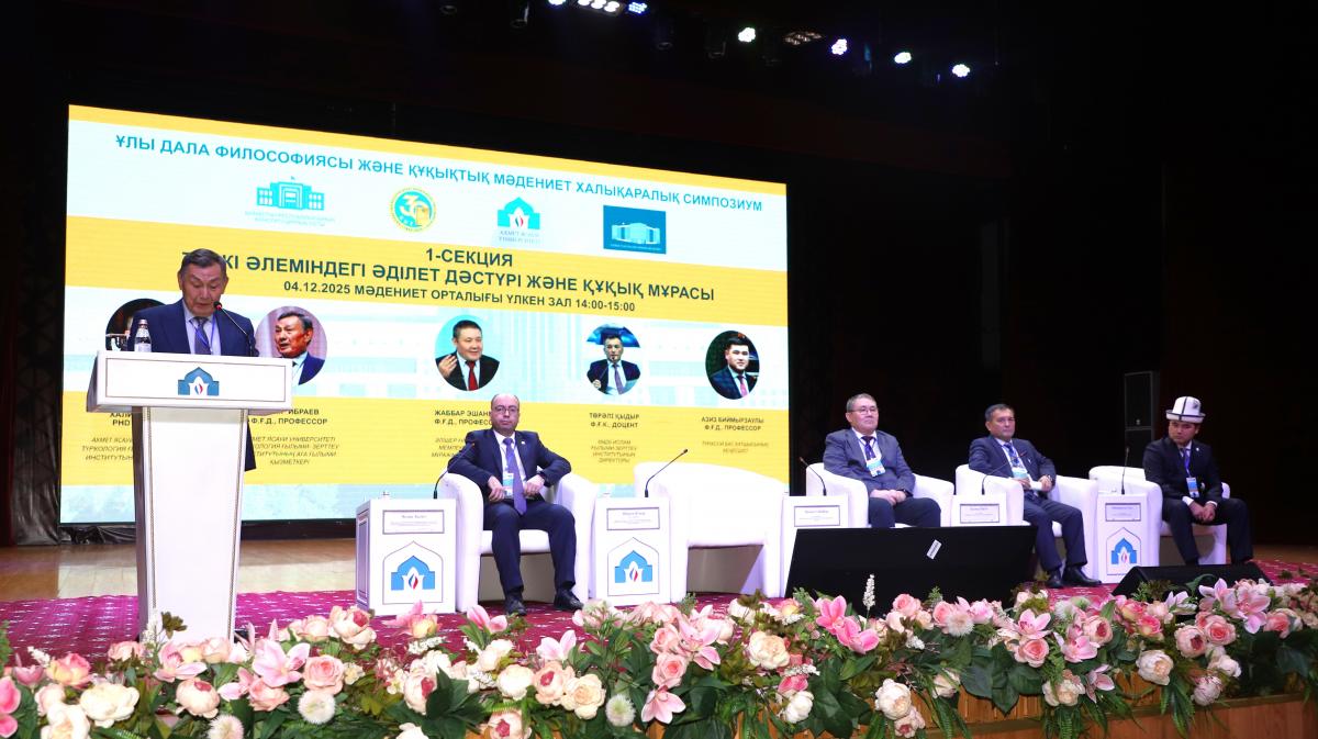 Abay Üniversitesi Devlet-Hukuki Araştırmalar Merkezi Başkanı ve Ulusal Hukuk Akademisi Başkanı Bahıtcan Kuandıkov, “Göçebe Kazak Topraklarındaki Kadim Hukuki Miraslar” başlıklı sunumunda bozkır yasalarının doğasını, toplumsal ilişkileri düzenlemedeki yerini ve tarihsel sürekliliğini kapsamlı biçimde değerlendirdi.