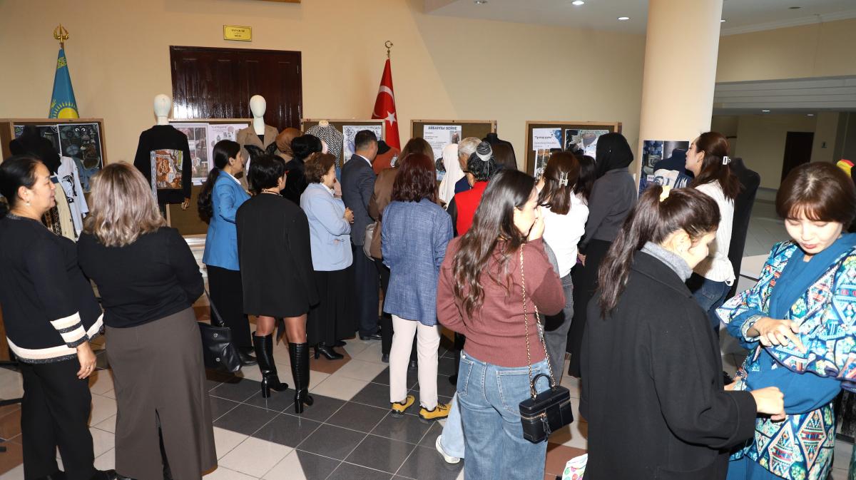 Serginin açılış kurdelesi Akademik İşlerinden Sorumlu Rektör Yardımcısı Elmira İdrisova, Sosyal ve Kültürel Gelişimden Sorumlu Rektör Yardımcısı Edil Tölegenov ve Ö. Janibekov Güney Kazakistan Pedagoji Üniversitesi Prof. Dr. Kuandık Eralin tarafından kesildi.