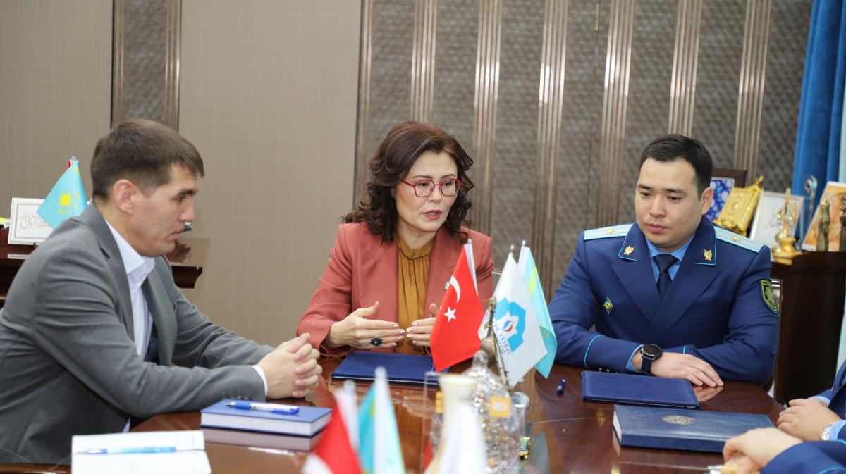 Üniversitemiz ile Kazakistan Cumhuriyeti Başsavcılığı Hukukî İstatistik ve Özel Kayıtlar Komitesinin Türkistan İl Müdürlüğü arasında iş birliği protokolü imzalandı. Protokol, Üniversitemiz Rektörü Zhanar Temirbekova ile İl Müdürlüğü Başkan Vekili Ayan Akberdiyev tarafından imza altına alındı.