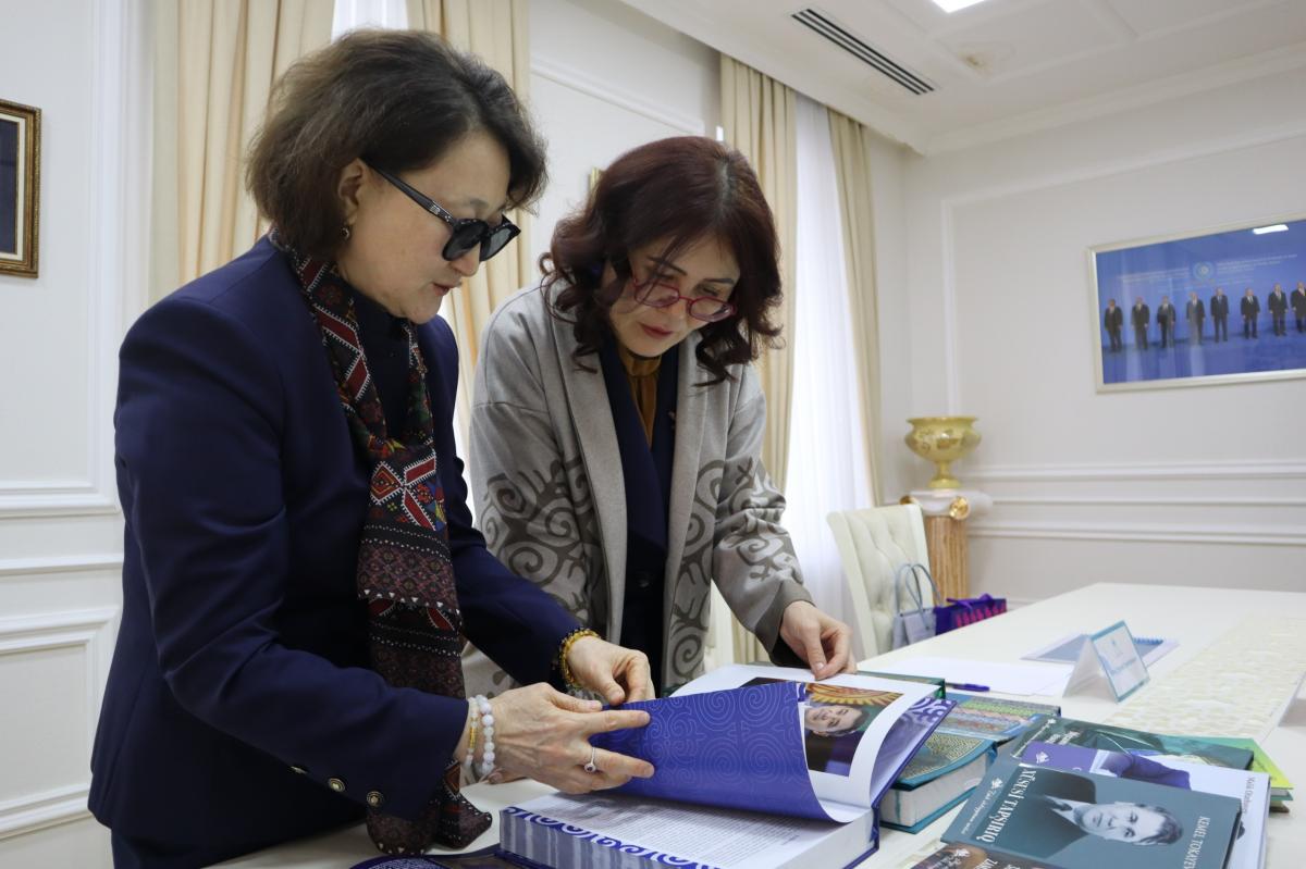 Üniversitemizin Rektörü Zhanar Temirbekova, Azerbaycan’ın başkenti Bakü’de, Türk Kültürü ve Mirası Vakfının genel merkezinde Vakıf Başkanı Aktoti Rayimkulova ile bir görüşme gerçekleştirdi.