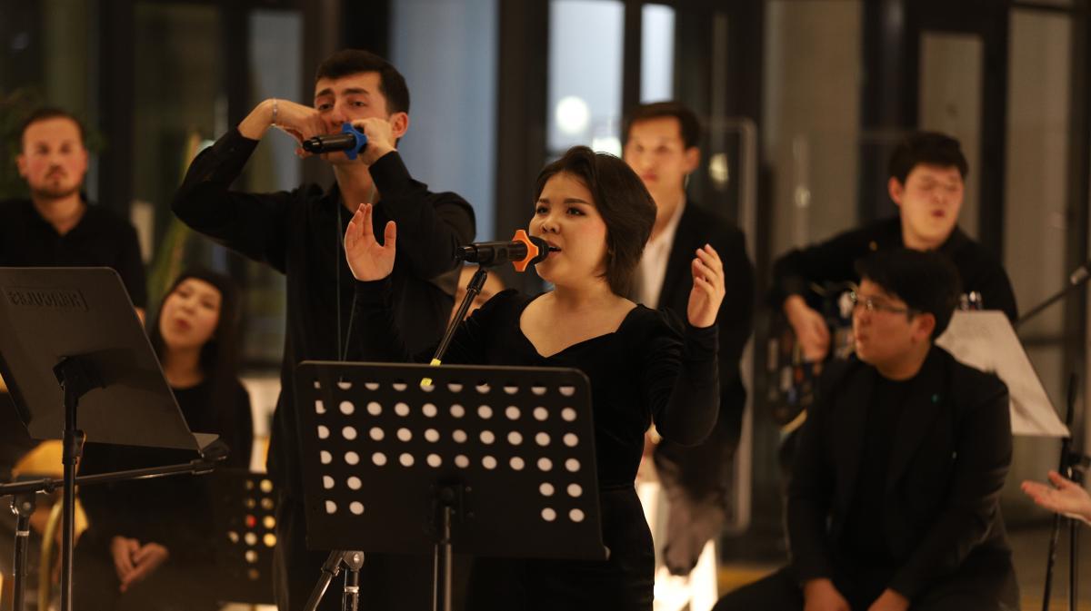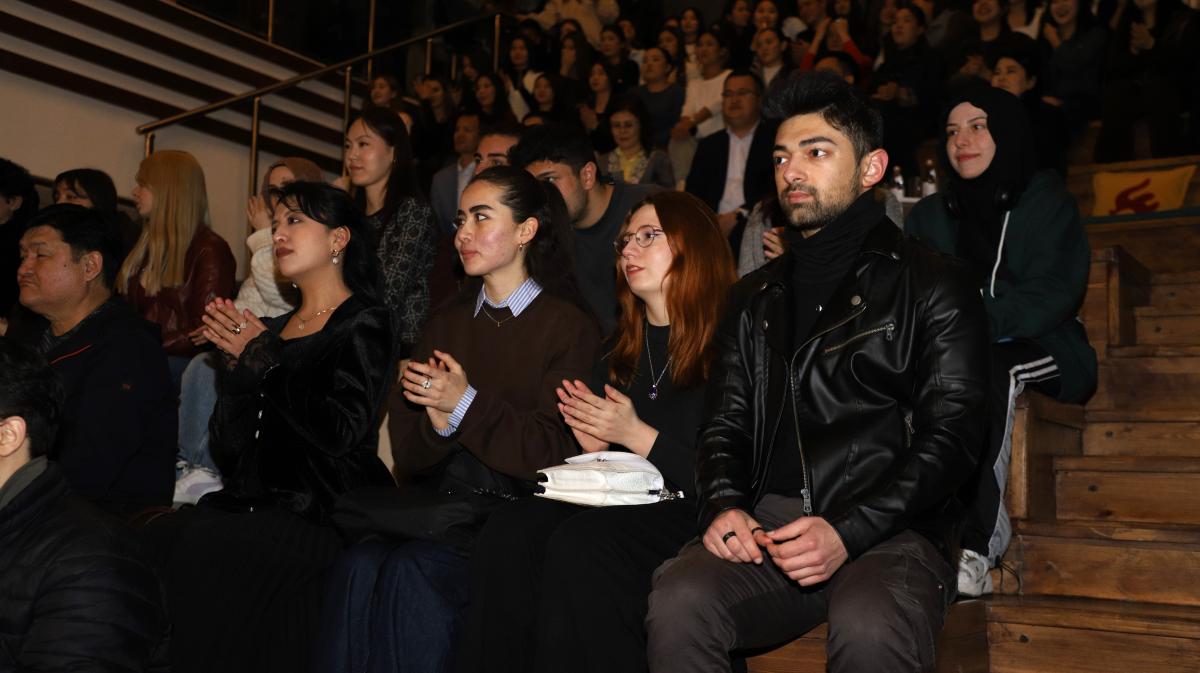 Türk dünyası gençlerini aynı çatı altında buluşturan gecede öğrencilerimiz sahne alarak unutulmaz performanslar sergiledi. Sıradan parçalar değil; dinleyicilerin gönlünde yer edinmiş, beğeni toplamış seçkin eserler icra edildi. Gecenin en dikkat çekici yönlerinden biri ise Kazak, Özbek, Kırgız ve Türk başta olmak üzere çeşitli Türk devletlerine ait eserlerin seslendirilmesiydi. Program boyunca toplam 7 dilde şarkılar icra edilerek üniversitemizin uluslararası niteliği ve çok kültürlü yapısı bir kez daha ortaya kondu.