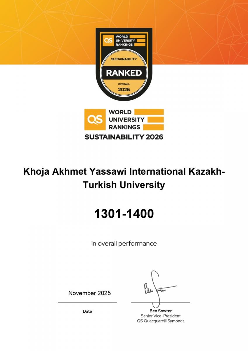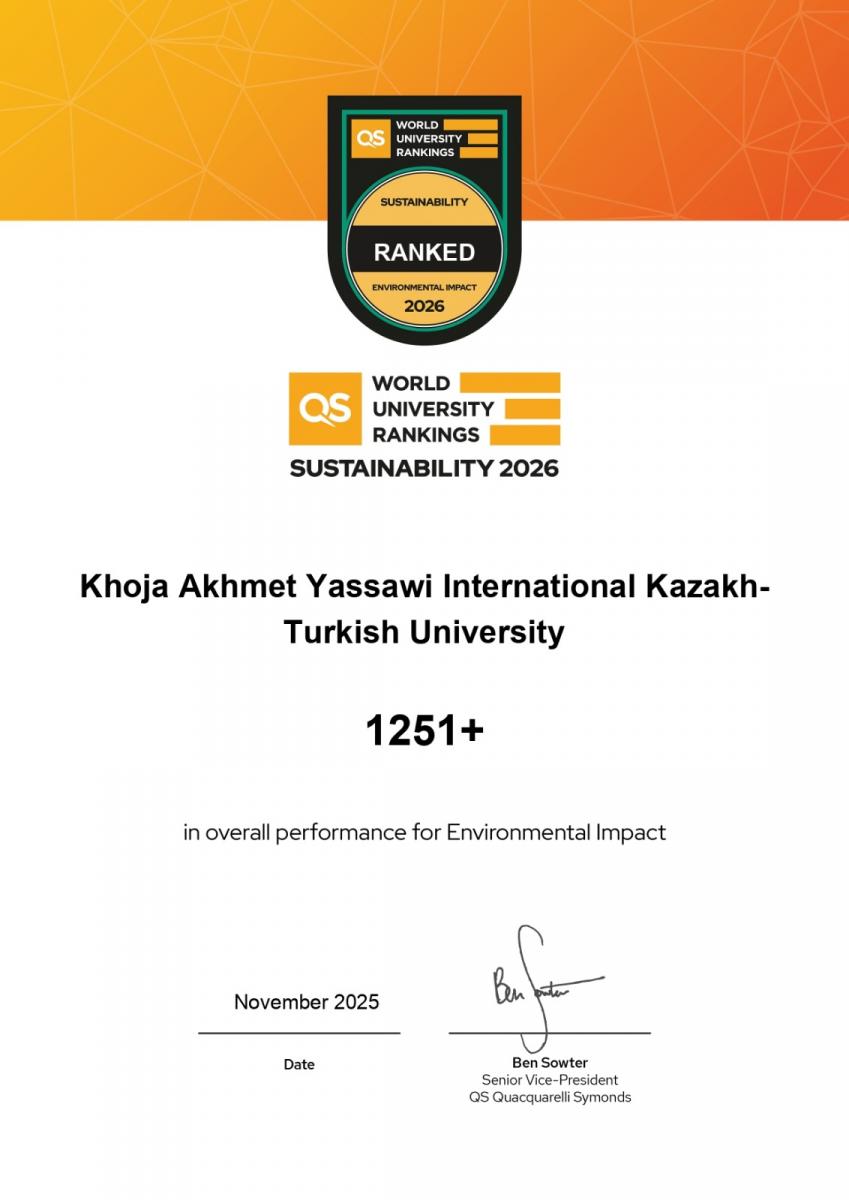 Sıralamada özellikle birkaç bireysel gösterge dikkat çekti. Üniversitemiz, Kazakistan genelinde Environmental Research ve Health & Wellbeing alanlarında 1’inci, Impact of Education göstergesinde ise 3’üncü sıraya yerleşti. Üniversitemiz, çevresel araştırmaların geliştirilmesine, eğitim kalitesinin artırılmasına ve öğrenciler ile toplum için elverişli bir ortamın oluşturulmasına katkı sunmaya devam etmektedir.