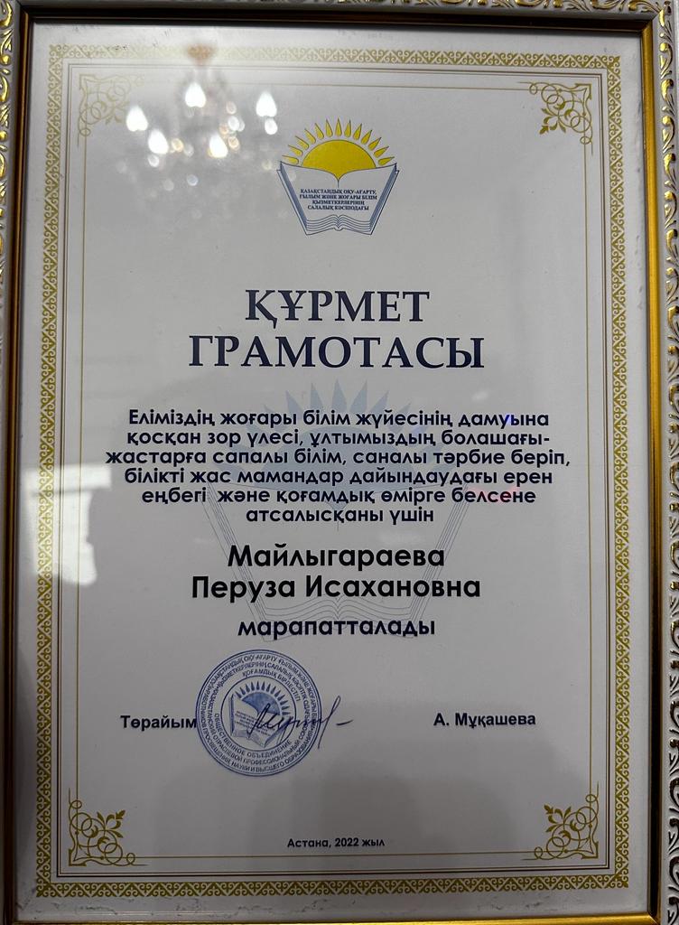 Майлыгараева Перуза Исахановна Должность: старший преподаватель английского языка Научная степень: - Преподаваемые курсы: практический курс английского языка English for Specific Purposes Elementary English Pre-intermediate English Intermediate English Upper-intermediate English Контакты: Филологический факультет 4-й корпус Каб. 204 Международный казахско-турецкий университет им. Ходжа Ахмета Ясави г. Туркестан ул. Спатаевва 18 8-(702)-443-80-65 peruza.65@mail.ru Опыт работы: 1. 1991-тек. год Международный казахско-турецкий университет им. Ходжа Ахмета Ясауи, преподаватель английского языка Повышение квалификации (посл.3 года): 1. Повышение квалификации «Білім берудің замануи тенденциялары мен парадигмалары. Жанартылған білім беру жүйесінің ерекшеліктері: дәстүр мен жаңашылдық» 72 часа Сертификат, 2018