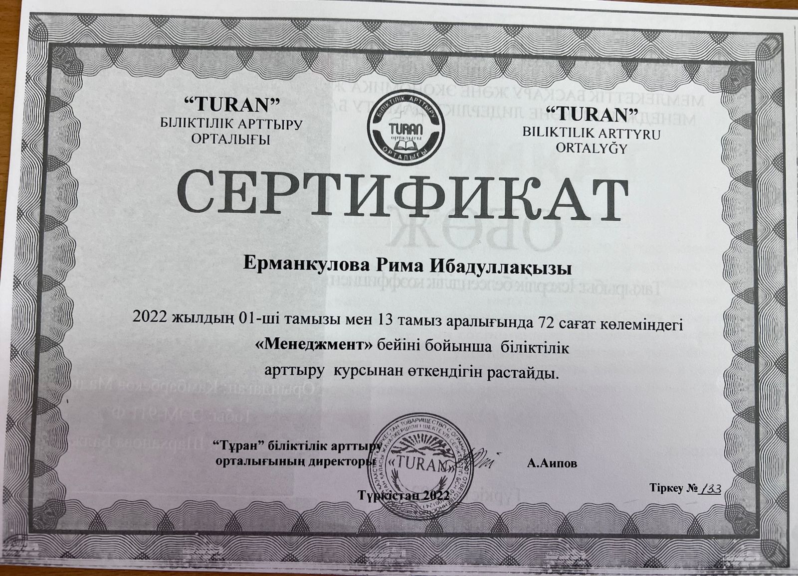 Ерманкулова Рима Ибадуллақызы - Қожа Ахмет Ясауи атындағы халықаралық қазақ-түрік университетінің Менеджмент мамандығы бойынша профессор м.а., экономика ғылымдарының кандидаты.Ол 1965 жылы Оңтүстік Қазақстан облысы, Қызылқум ауданы, Шаулдер елді мекенінде дүниеге келді. 1983-1988 жылдар аралығында Жамбыл жеңіл және тамақ өнеркәсібі технологиялық институты экономика факультетінде білім алып, халық тұрмыс өтеуді ұйымдастыру экономикасы мамандығы бойынша бітіріп шықты. 2006 жылы 19 мамырдағы шешімімен (№ 8 хаттама) экономика ғылымдарының кандидаты ғылыми дәрежесі берілді. 2010 жылы 23 қыркүйектегі шешімімен (№ 8 хаттама) экономика мамандығы бойынша доцент ғылыми атағы берілді. 2019 жылы 25 желтоқсандағы шешімімен Қ.А. Ясауи атындағы Халықаралық қазақ-түрік университетінің профессор міндетін атқарушысы Еңбек жолын 1988-1995 жылдары Түркістан қаласында Тігін фабрикасында экономист, бас экономист қызметінен бастады. 1995 жылдан бастап Қ.А. Ясауи атындағы Халықаралық қазақ-түрік университетінің «Халықаралық экономикалық қатынастар» кафедрасына оқытушы қызметіне қабылданған. 2002 оқу жылынан аға оқытушы, 2006 жылдан бастап «Менеджмент және маркетинг» кафедрасының доцент міндетін атқарушысы кейінен Менеджмент және туризм кафедрасында оқытушылық қызметте жалғастыруда. 1995-2024 жылдар аралығында жалпы 100 дан аса макала, оқулықтар мен ғылыми еңбектері жарық көрген. Зерттеу бағыттары: Менеджмент, Менеджментке негіздері, Мотивациялық менеджмент,Ұйым теориясы және мінез-құлқы.