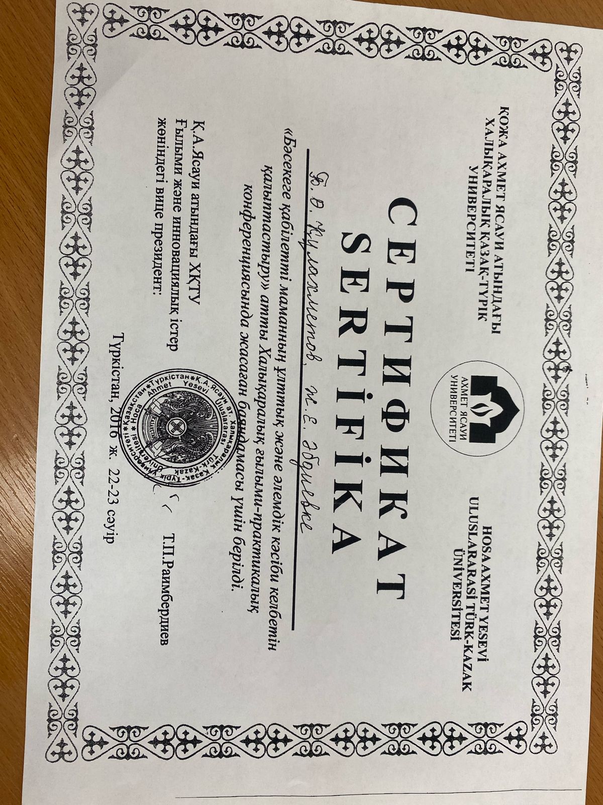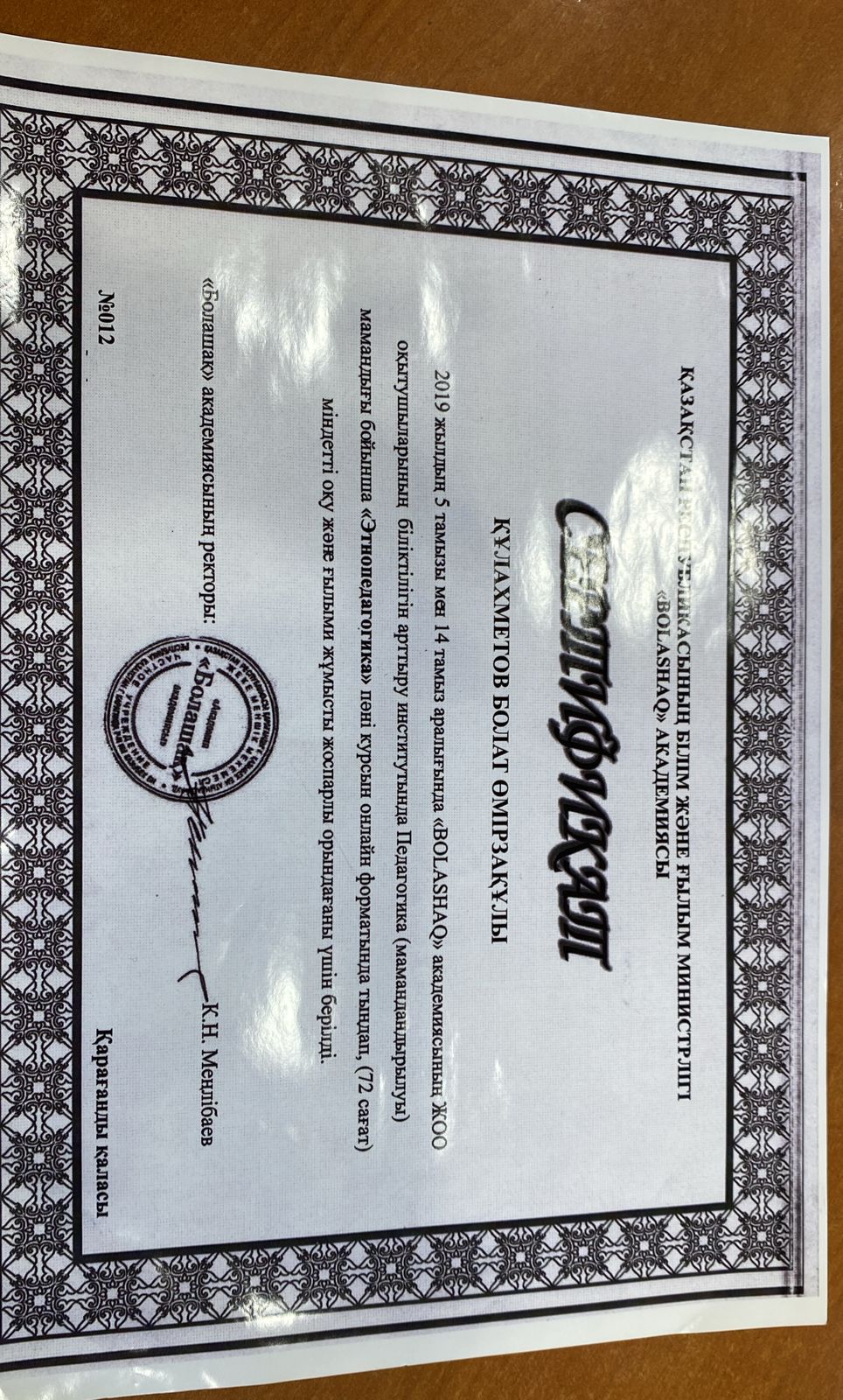 ӨмірбаянМен, Құлахметов Болат Өмірзақұлы, 1958 жылы Оңтүстік Қазақстан облысы Мырзакент селосында дүниеге келдім.1965-1975 жылдар аралығында Түркістан қаласында В.И.Ленин атындағы жалпы орта мектебінде білім алдым.1980 жылы Алматы қаласында Қазақ ауылшаруашылық институтының инженер- педагогикалық факультетін бітіріп шықтым.Еңбек жолымды 1980 жылы Түркістан қаласындағы «Ремстройдормаш»заводында иженер- конструктор қызметінен бастадым.1981-1985 жылдары Түркістан индустриалды- педагогикалық техникумда оқытушылық қызметін атқардым.1985-1986 жылдары аталған техникумда комсомол комитетінің хатшысы болып сайландым.1987-1988 жылдары Алматы облысы кәсіптік білім басқармасының оқу ісі жөніндегі инстпектор жұмысын атқардым.1988-1994 жылдары Түркістан индустриалды- педагогикалық техникумда оқытушылық қызметін атқардым.1994 жылы Абай атындағы Алматы Мемлекеттік университетіндегі кандидаттық диссертацияны қорғап , Қ.А.Ясауи атындағы ХҚТУ- нің тарих-филология факультетінде педагогика саласында аға оқытушы қызметіне қабылдадым.2003 жылы 13.00.00- ҚР ЖАК Педагогика мамандығы бойынша доцент ғылыми атағы берілді , және «Бастауыш мектеп педагогикасы және әдістемесі » кафедра меңгерушісі қызметіне тағайындалды.2004-2007 жылдары «Жалпы психология» кафедрасының меңгерушісі қызметін атқардым.2008 жылы Қ.А.Ясауи атындағы ХҚТУ сенат шешімі бойынша профессор ғылыми атағы берілді.2009-2012 жылы аралығында университетін оқу ісі жөнінде бас аудиторы қызметін атқардым.2012 жылдан бастап осы күнге дейін Қ.А.Ясауи ХҚТУ «Педагогикалық ғылымдар» кафедрасында профессор қызметін атқарып келемін.Жанұялымын, 3 ұл, 1 қыз тәрбиелеп жатырмын.Сот және тергеуде болған емеспін, шетелде туыстарым жоқ.