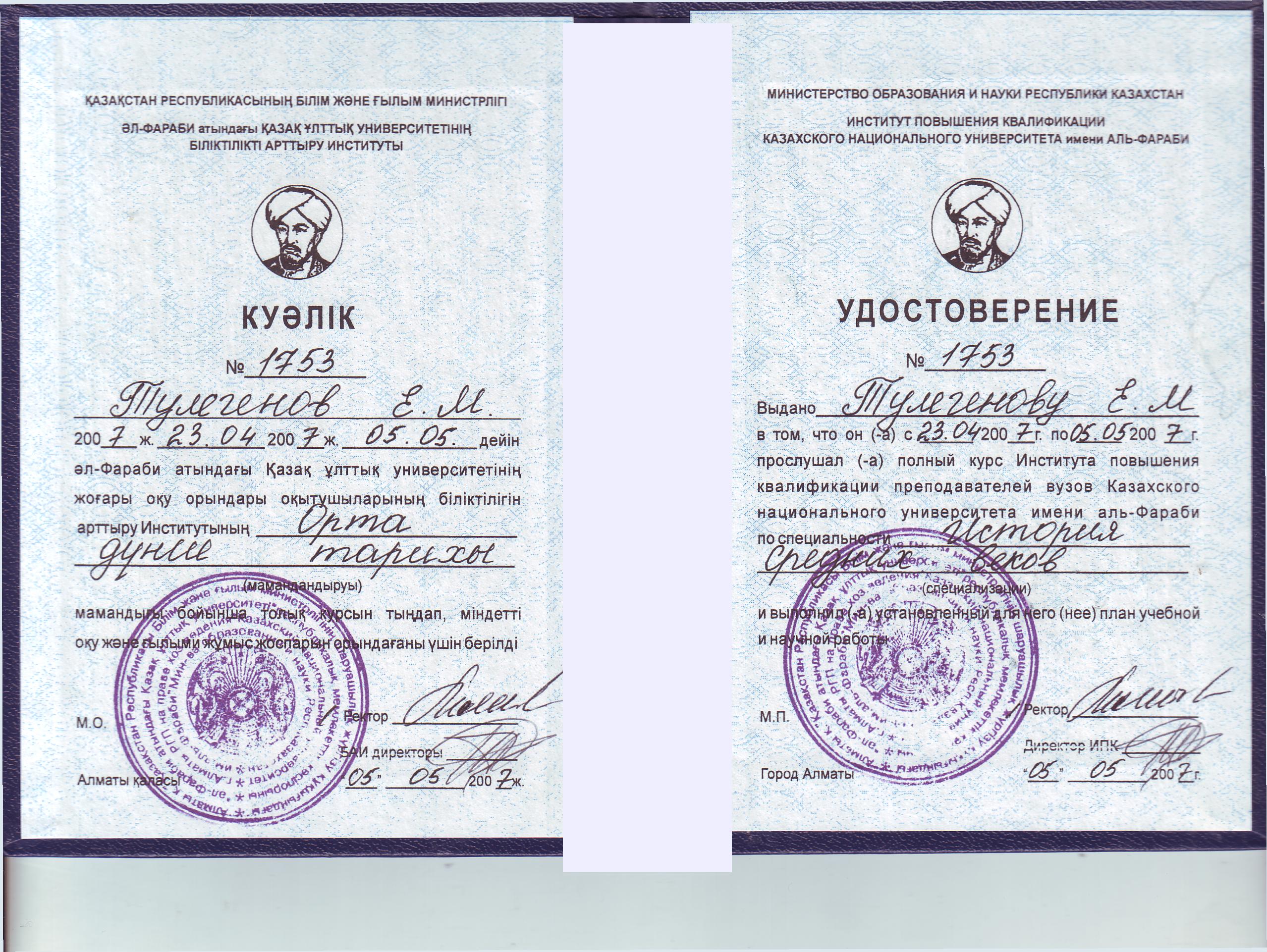 | Kısa Bilgi | Комиссия төрағасы, Bilim Adayı |