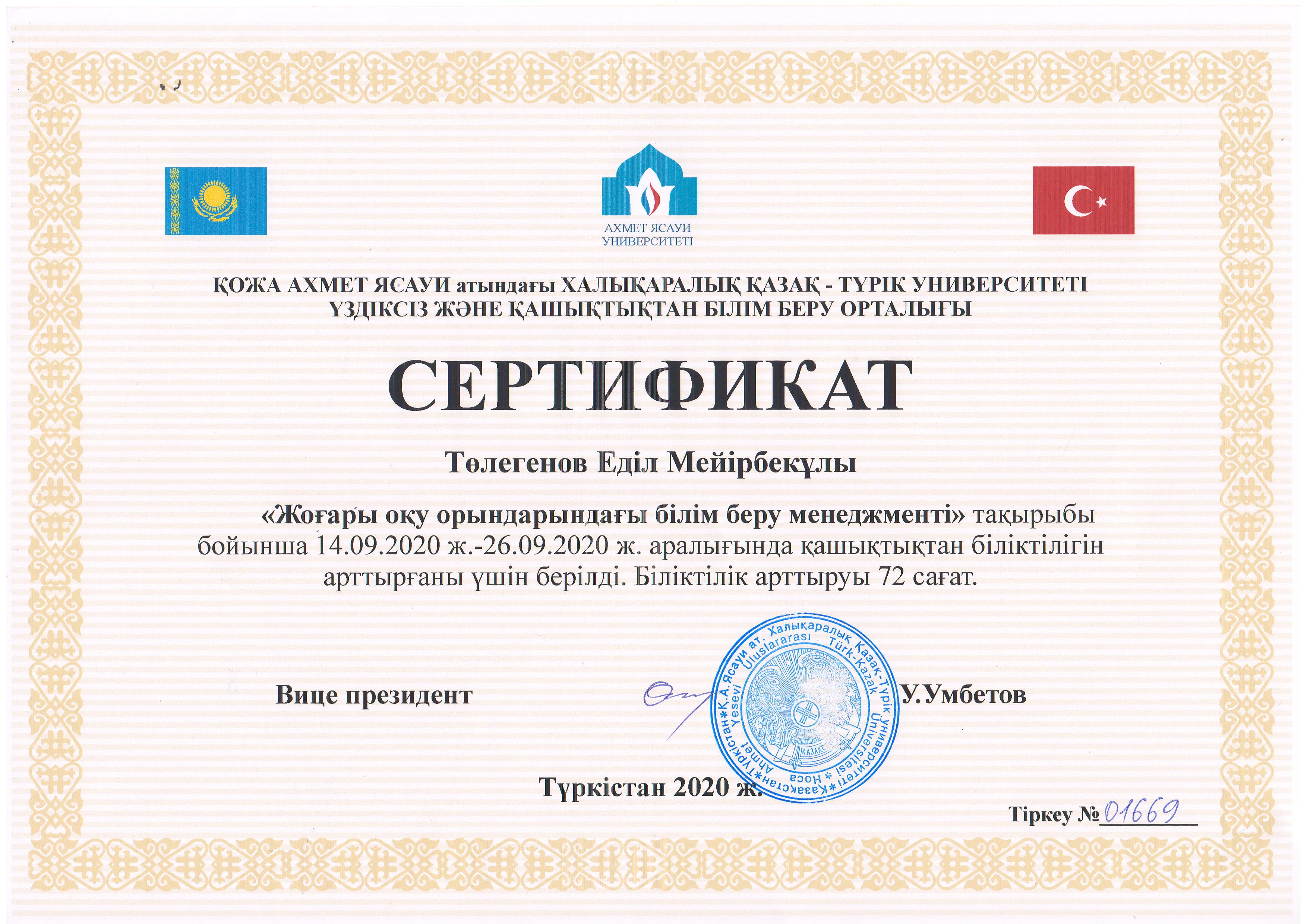 | Kısa Bilgi | Әлеуметтік мәдени даму вице-ректоры, Bilim Adayı |
