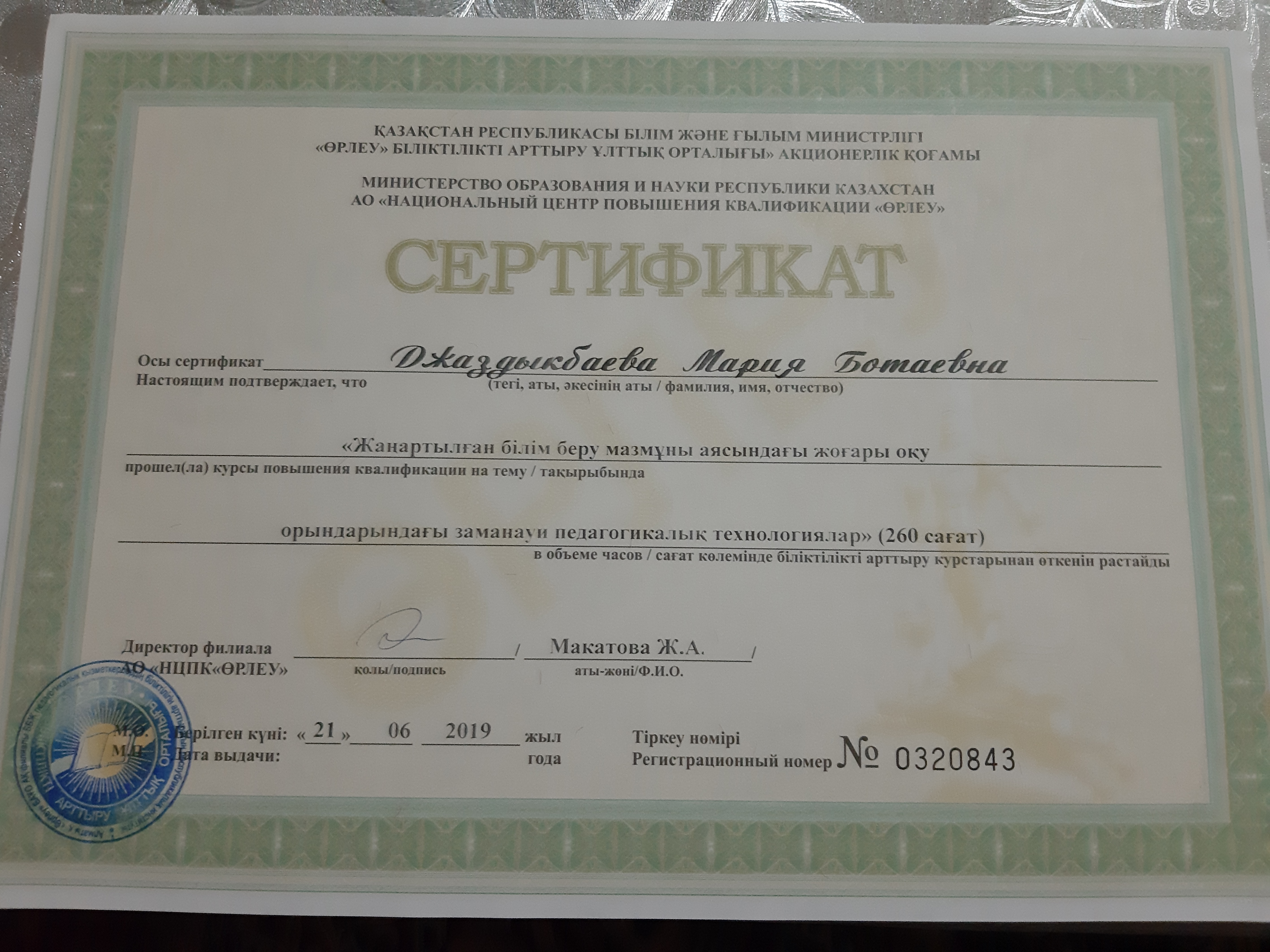 Джаздыкбаева Мария Ботаевна - 1964 жылы 28 сәуірде Оңтүстік Қазақстан облысы, Түркістан қаласында дүниеге келген. Ұлты - қазақ. 1981 жылы Түркістан қаласындағы М.Маметова №6 орта мектепті үздік аяқтады. 1981-1983 жылдар аралығында Түркістан ауданы Қызыл жол елді мекенде кітапханашы. 1983-1987жылдары Қазақтың мемлекеттік қыздар педагогикалық институты, Педагогика және психология факультетінің «Мектепке дейінгі педагогика және психология» мамандығын бітіріп шықты. М.Б.Джаздыкбаева 1987 жылы еңбек жолын Түркістан қаласындағы Педагогикалық училищеде мектепке дейінгі педагогика пәнінің оқытушысы мамандығымен жұмысын жалғастырған. 2003 жылдан бастап А. Ясауи атындағы ХҚТУ-ң «Жалпы педагогика және психология» кафедрасына жеке еңбек шарты негізінде оқытушы қызметіне қабылданды. Қ.А.Ясауи атындағы ХҚТУ-гі құрылымдық өзгерістерге байланысты еңбек шарты негізінде «Жалпы педагогика және этнопедагогика» кафедрасына аға оқытушы қызметіне ауыстырылды. А. Ясауи атындағы ХҚТУ жанындағы педагогика ғылымдарының докторы ғылыми дәрежесін беру жөніндегі Д 14.61.35 диссертациялық кеңесінде 13.00.08 – Кәсіптік білім беру теориясы мен әдістемесі мамандығы бойынша «Болашақ мұғалімнің қазақ халық дәстүрлері негізінде бастауыш сынып оқушыларын әдепке тәрбиелеуге кәсіби даярлығын қалыптастыру» тақырыбында кандидаттық диссертация жұмысын сәтті қорғады. Ғылыми жетекшілері п.ғ.д., профессор Оңалбек Жарылқасын, социология ғылымдарының кандидаты, доцент Сейткулов Н.А.ҚР Білім және ғылым министрлігінің Білім және Ғылым саласындағы бақылау комитетінің №3 хаттама шешіміне сәйкес педагогика ғылымдарының кандидаты ғылыми дәрежесі берілді. БҒМ 3 хаттама 31.03.11ж. Бұй. №21/572 01.04.2011жҚ.А.Яссауи атындағы ХҚТУ-ң №5 Сенат мәжілісінің шешіміне сәйкес қауымдастырылған профессор (доцент) міндетін атқарушы қызметіне ауыстырылды. Бұй № 1/283 02.05.2013 ж. Джаздыкбаева Мария Ботаевнаның педагогикалық еңбек өтілімі – 36 жыл. Ғылыми мақалалары мен ғылыми еңбектерінің саны – 102. Қорғауға дейін – 27, ал қорғаудан кейін – 75 ғылыми еңбектері баспа бетінде жарияланған. Қазақстан Республикасы Білім және ғылым министрлігінің Білім және ғылым саласындағы бақылау комитетіне 13.00.00 – Педагогика мамандығы бойынша қауымдастырылған профессор (доцент) ғылыми атағын алу үшін талапқа сай 20 ғылыми еңбегі ұсынылып отыр. Атап айтсақ:Түркия мемлекетінде өткізілген халықаралық ғылыми-теориялық конференцияда 2 мақаласы;Пәкістан мен Германияның Skopus базасында - 2, Германияның халықаралық журналында 2 ғылыми мақаласы жарияланған. Сонымен қоса, қорғаудан кейін 14 мақаласы ЖАҚ бекіткен журналдарда көрініс тауып, 2014-2015 оқу жылының екінші жартысынан бастап университеттің оқу жүйесіне 5B010100 – Мектепке дейінгі оқыту және тәрбиелеу мамандықтары үшін 1 оқу құралы (Мектепке дейінгі білім беруді ұйымдастыру және басқару), 1 - монографиясы (Халық дәстүрлері негізінде оқушыларды әдепке тәрбиелеуде мұғалімнің даярлығы) қолданысқа енгізілген. Студенттер мен магистранттардың ғылыми-теориялық конференция-сында М.Б.Джаздыкбаеваның жетекшілігімен ПМД-911 тобының 3 курс студенті Исхакова Перизаттың ғылыми жұмысы үздік деп танылып, Республикалық конференцияға жолданған. Нәтижесінде, ҚР Білім және ғылым министрінің (Б.Т.Жұмағұловтан 2012 жылы), ПМД-311 тобының студенті Мейірбек Пернекүл (А.Б.Сәрінжіповтан 2015 жылы) ІІІ дәре