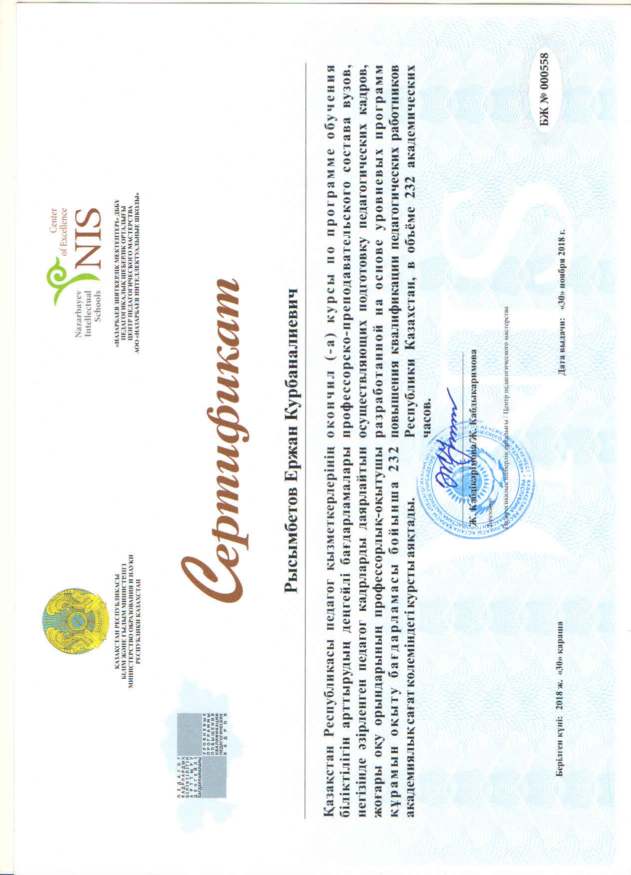 Yerzhan Ryssymbetov, 1 Ocak 1981'de Türkistan ili Kentau şehrinde doğmuştur. 1987-1998’de liseden mezun olmuştur. Ayrıca 1991’den itibaren sanat okulunda resimle yakından ilgilenmeye başlamıştır. Eğitim 1998’den 2002’ye kadar Abilhan Kasteyev Çimkent Sanat Koleji “Metal İşleme” Bölümünden mezun olup, uzman ressam derecesi almıştır. 2002’den 2006’ya kadar, Temirbek Jurgenov Kazak Milli Sanat Akademisi’nden «Makine resim sanatçısı» Bölümünde eğitim almıştır. 2006’dan 2008’e kadar, Abay Kazak Milli Eğitim Üniversitesi Güzel Sanatlar Fakültesi Resim Sanatı ve Çizim Bölümünde okuyup, yüksek lisans derecesi almıştır. 2012’den 2015’e kadar, Temirbek Jurgenov Kazak Milli Sanat Akademisi «6D041600-Resim Sanatı» Bölümünde doktora eğitimini başarıyla tamamlayıp, 2016 doktor derecesi verilmiştir. İş deneyimi. 2008’den 2012’ye kadar Abay Kazak Milli Eğitim Üniversitesi Sanat ve Grafik Fakültesi Resim Sanatı Bölümünde resim, kompozisyon ve uygulama alanında öğretim görevlisi olarak çalışmıştır. 2012’den 2013’e kadar Abay Kazak Milli Eğitim Üniversitesi Sanat ve Grafik Fakültesi Dekan Yardımcısı olarak görevde bulunmuştur. 2013’ten 2014’e kadar Abay Kazak Milli Eğitim Üniversitesi Sanat, Kültür ve Spor Enstitüsü Tasarım Bölümünde öğretim görevlisi olarak çalışmıştır. 2015’ten 2017’ye kadar Abay Kazak Milli Eğitim Üniversitesi Sanat, Kültür ve Spor Enstitüsü Yaratıcı Uzmanlık Bölümünde öğretim görevlisi olarak görevine devam etmiştir. 2017’den 2018’e kadar Abay Kazak Milli Eğitim Üniversitesi Sanat, Kültür ve Spor Enstitüsü Müdür Yardımcısı olarak çalışmıştır. 2018’den 2019’a kadar Abay Kazak Milli Eğitim Üniversitesi Sanat, Kültür ve Spor Enstitüsü Sanat Eğitimi Bölümünde öğretim görevlisi olarak görev yapmıştır. 2019 ile 2020 yılları arasında Abay Kazak Milli Eğitim Üniversitesi Sanat, Kültür ve Spor Enstitüsü Sanat Eğitimi Bölümü Başkanı olarak çalışmıştır. 2020 yılından itibaren Hoca Ahmet Yesevi Uluslararası Türk-Kazak Üniversitesi Spor ve Güzel Sanatlar Fakültesi Güzel Sanatlar Bölümünde öğretim görevlisi olarak çalışmaktadır. Araştırma çalışmalarının temel ilkeleri ve sonuçları 2008’den beri Uluslararası, Ulusal ve üniversite genelindeki sergilerinde tanıtılmaktadır. Bunun yanı sıra bilimsel-pratik, metodolojik konferanslarda sunularak, yurtiçi ve yurtdışındaki çeşitli dergilerde ve sanat albümlerinde yayınlanmaktadır. Ödüller 2019’da “Sanat, Kültür ve Spor Enstitüsü’nün 50. Yıl dönümü” onur rozeti verilmiştir. 2020 yılında Kazak sanatının temsilcici onursal unvanı rozeti takdim edilmiştir. Yaratıcı sergiler ve eserler 70’den fazla eseri vardır. 3 kişisel sergi düzenlemekle birlikte 30 sergiye katılmıştır. Kazakistan Cumhuriyeti sergi müzelerinde ve üniversitelerde sergi düzenlemiştir. İstanbul’da 3 kişisel sergi organize etmiştir. Sanat eserleri Kazakistan ve Türkiye’nin müzelerinde ve Kazakistan, Rusya ve Türkiye vatandaşlarının özel koleksiyoncularının fonlarında yer almaktadır. Ulusal, Uluslararası ve kentsel sanat sergilerine katılmaktadır.