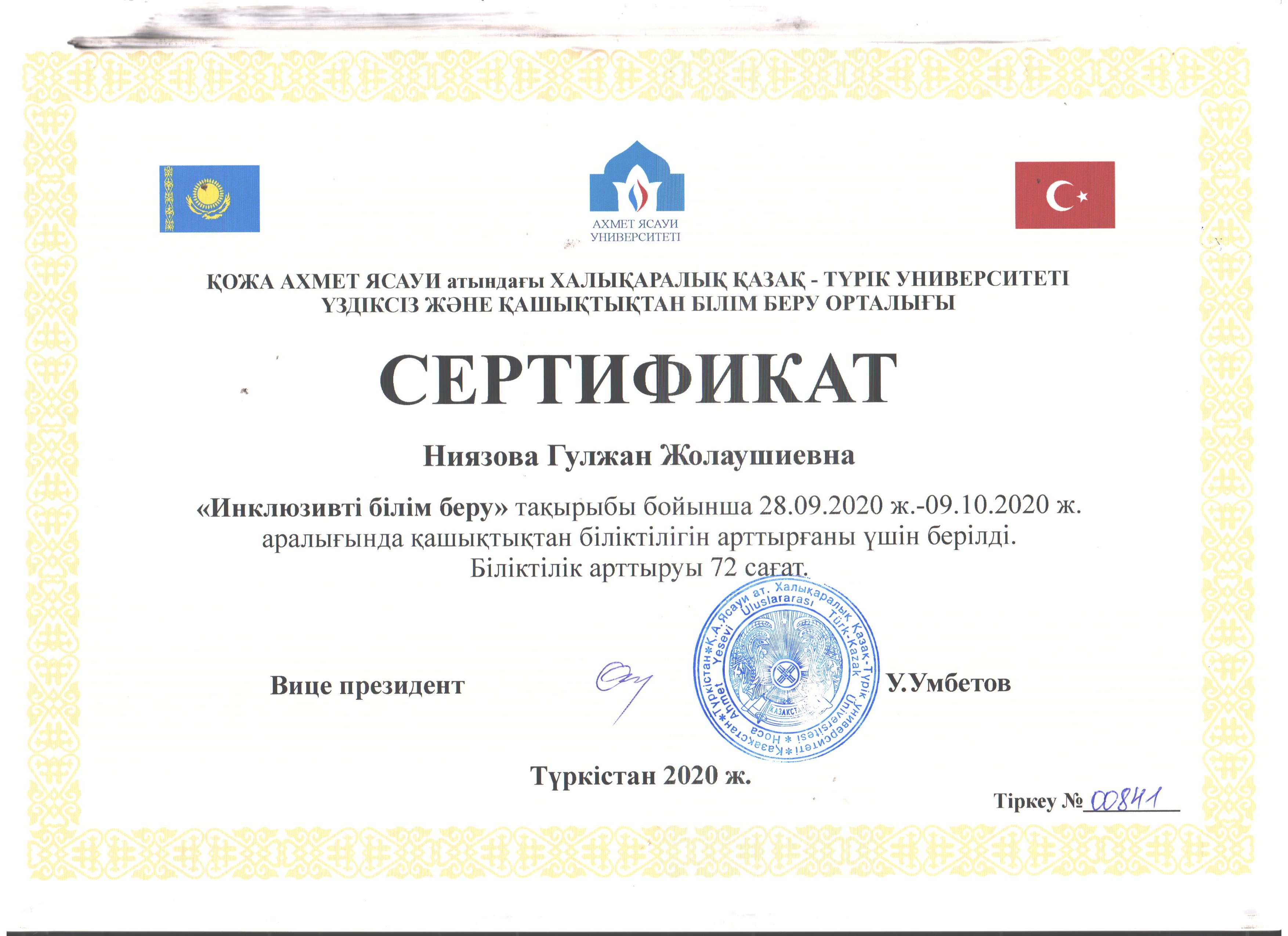 08/28/1977'de doğdu. 2008'den beri pedagojik bilimler adayı (00/13/02-eğitim ve öğretim teorisi ve metodolojisi / bilgisayar bilimi, eğitim sisteminin bilgilendirilmesi /). Tez konusu:" bilgi ve iletişim teknolojilerinin kullanımı, mesleki eğitim uzmanlığı öğrencilerinin mesleki yeterliliklerinin oluşumunda önemli bir unsurdur", 2011'den beri doçenttir (uzmanlık: 13/05/00-bilgisayar bilimi, bilgisayar mühendisliği ve yönetim). 2021-2023 yılları için AP09259047 «öğretmenlerin dijital yeterliliğinin oluşumu beşeri sermayenin gelişiminin anahtarıdır" hibe projesinin lideriydi. AP14871966 sayılı hibe projesinin yöneticisi "gelecekteki bilgi ve iletişim teknolojisi uzmanlarının esnek becerilerinin oluşumu için metodik bir sistemin geliştirilmesi". Eğitim, bilimsel ve eğitimden sorumlu Mühendislik ve Pedagoji Fakültesi Dekan Yardımcısı (2008-2013), Mühendislik Fakültesi Öğretim ve Metodoloji Konseyi Başkanı (2015-2016), Bilgisayar Bilimleri Bölümü Başkanı (2016-2018). 01.09.2022 tarihinden itibaren Mühendislik Fakültesi akademik çalışmalardan sorumlu dekan yardımcısı.G. Z. Niyazova'nın bilimsel tavsiyesi altında, 4 doktora tezi başarıyla korunmuştur (uzmanlık alanı 6d010300-Pedagoji ve Psikoloji); 7m01557–Bilgisayar Bilimi eğitim programında 7 yüksek lisans tezi, 7m06127-Bilgisayar Bilimi eğitim programında 9 yüksek lisans tezi. h-indeks-1'dir (https://www.scopus.com/authid/detail.uri?authorId=55822416800 ), aşağıdakiler de dahil olmak üzere 100'den fazla bilimsel yayının yazarı: monografi-1, yazarın sertifikası-3, çalışma kılavuzu-5, FSOSO-46 tarafından önerilen dergilerde, yabancı ve yerli konferanslarda-46, eğitimin bilgilendirilmesi yönünde önde gelen bir uzman. Eğitimin bilgilendirilmesi, bilgi sistemlerinin tasarımı, mesleki yeterliliklerin oluşumu, geleceğin öğretmenlerinin iletişim potansiyeli, eğitimde modern öğretim teknolojileri, eğitim sürecinde dijital öğrenme ortamlarının gerçekleştirilmesi konularının sistematik araştırılmasındaki bilimsel ve pedagojik faaliyetler sırasında.