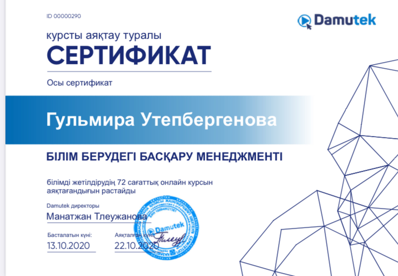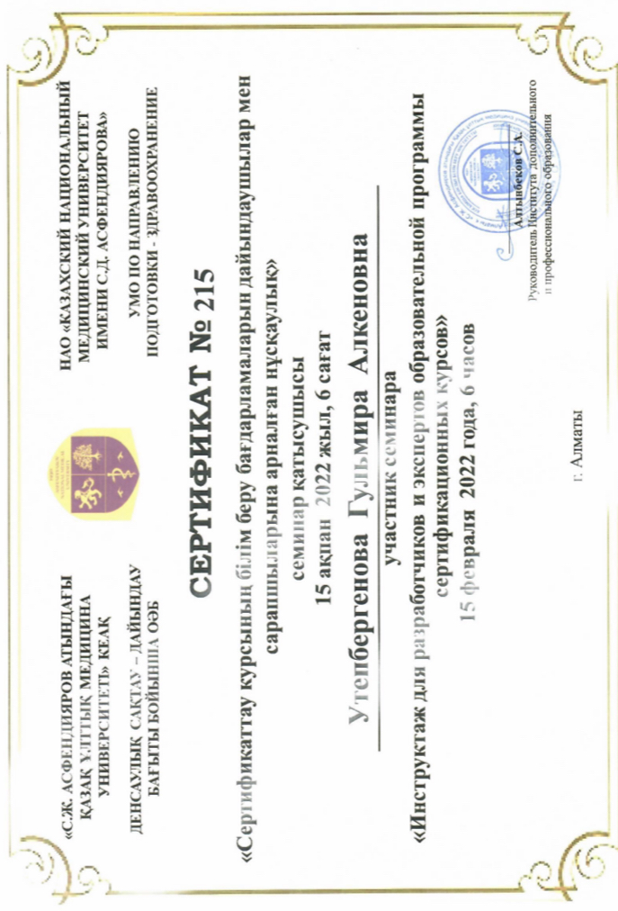 | Kısa Bilgi | Кафедра меңгерушісі, Bilim Doktoru, Doç. |