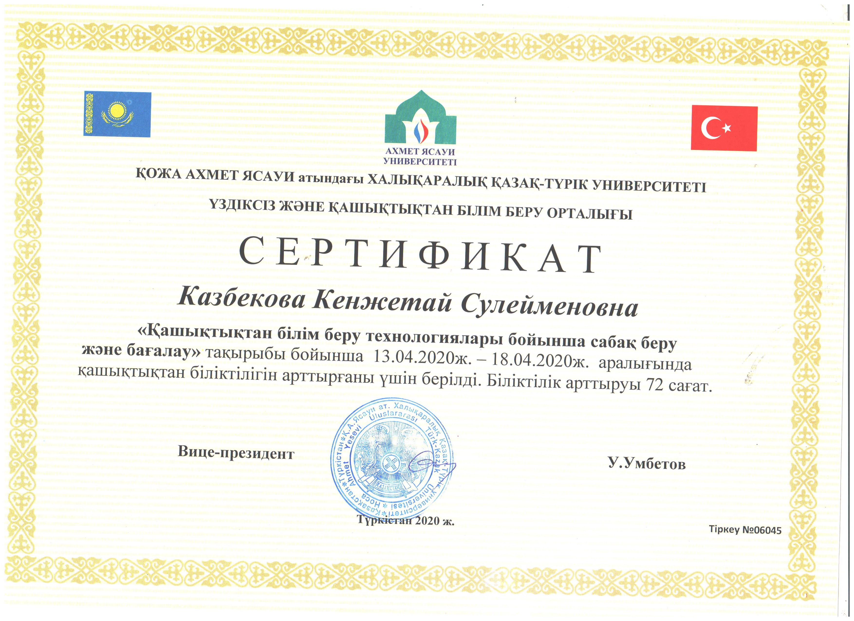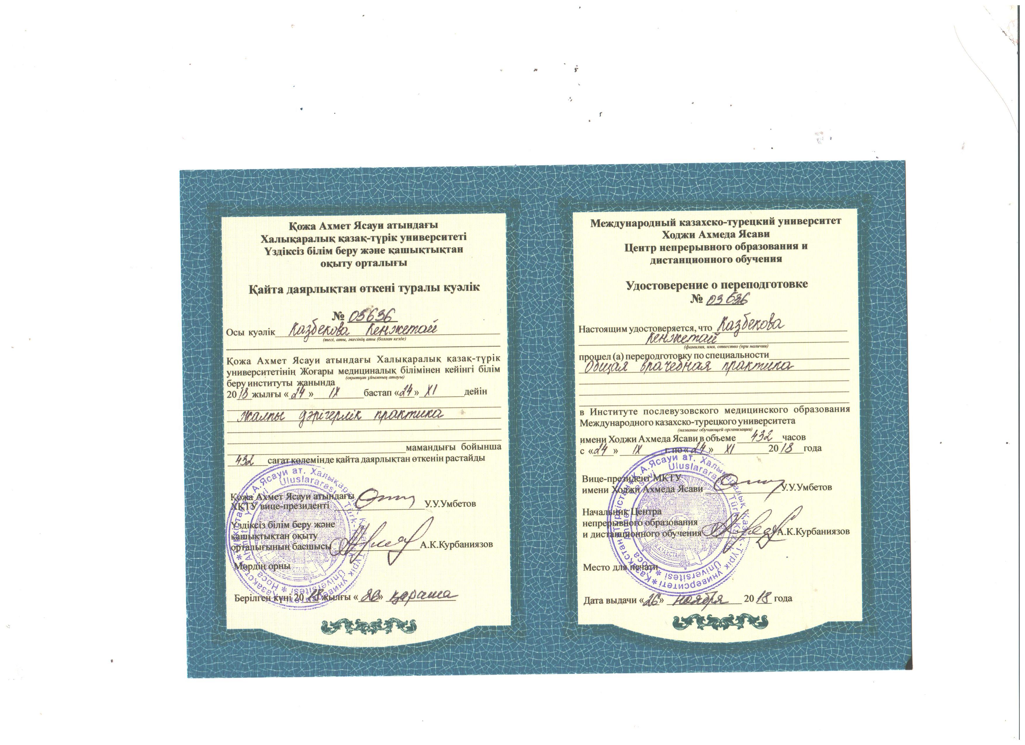 Өмірбаян Мен, Казбекова Кенжетай 1949 жылы 06 маусымда Жамбыл облысы Меркі ауданында дүниеге келдім.8 сыныпты бітіргеннен кейін медициналық училищеге түсіп, 1967 жылы үздік белгімен бітірдім. 1967 жылдан 1970 жылға дейін медбике болып жұмыс істедім. 1970 жылы Семей қаласындағы Семей мемлекеттік медицина институтына оқуға түсіп, 1976 жылы бітірдім. 1976-1977 ж. интернатура өттім.1977-1987 жылдары ЖМКА (БСМП) кардиолог болып жұмыс істедім.1988 жылдан 1996 жылға дейін "Фосфор" МСБ кардиолог болып жұмыс атқардым.1996 жылдан қазіргі уақытқа дейін Қ.А.Ясауи атындағы ХҚТУ медицина факультетінде жұмыс атқарып келемін. 2002 жылы кандидаттық диссертация қорғадым, 2007 жылы доцент атағын алдым.Біліктілікті арттыру курстары арқылы білімімді үздіксіз арттырып келемін, кардиология және электрокардиография бойынша курстар өткіземін.60-тан астам ғылыми мақалаларым жарық көрді, 2 оқулық және электрокардиография бойынша атлас мемлекеттік тілде жазылды, олар республикалық оқу-әдістемелік кеңестің кардиология институтынан оң пікірге ие болып, ҚР барлық жоғары оқу орындарына оқулық ретінде ұсынылды.Марапаттары: ХҚТУ-нің 25 жылдығы және ХҚТУ-нің 30 жылдығына арналған медальдарымен, Қ.А. Ясауи-дің 1500 жылдығына орай «Ұлағатты ұстаз» арналған медалмен марапатталдым.